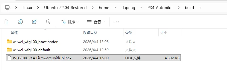 注:我的固件存放目录是默认路径(/PX4-Autopilot/build),但板子名称以及固件名称,大家需要按照实际情况自行修改~
