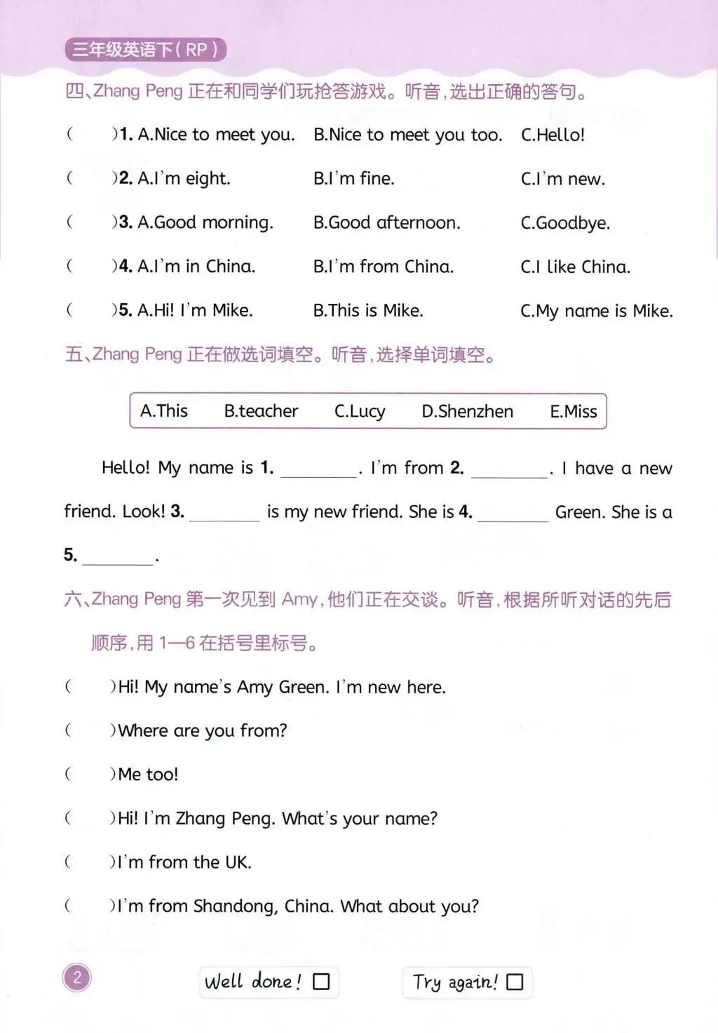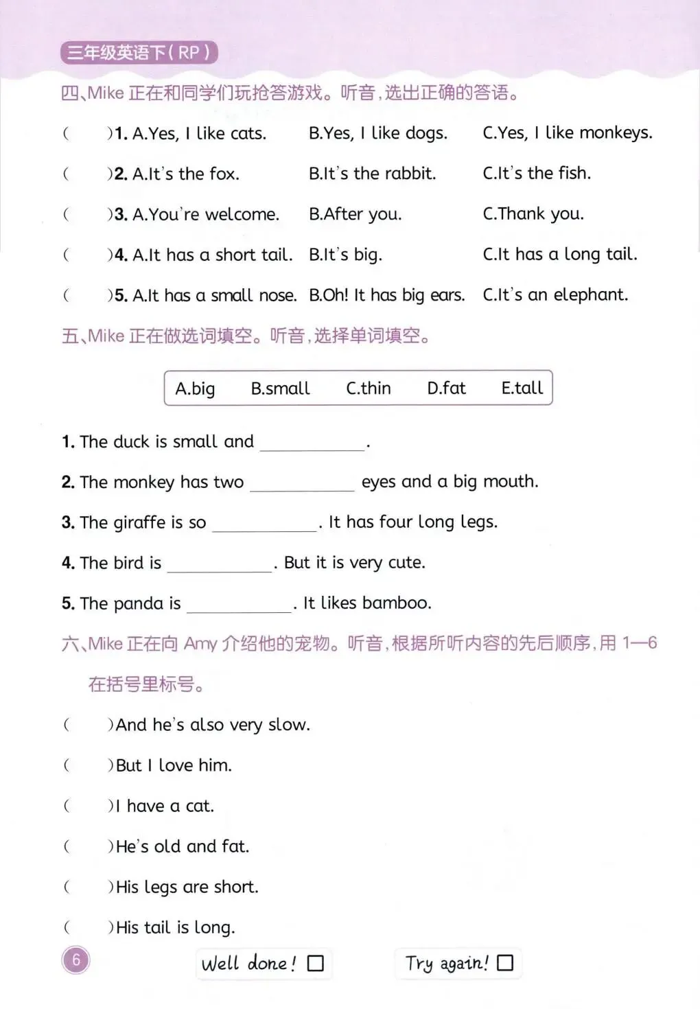 别担心!专为人教版(PEP)三年级下册量身打造的同步听力训练,正式上线啦!完全贴合课本教材,不用报班,在家就能轻松练,帮孩子攻克听力难题,养成英语“磨耳朵”好习惯~