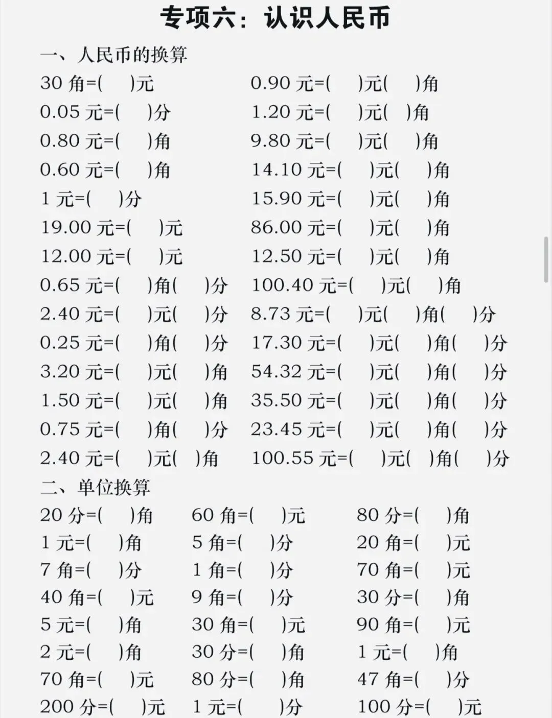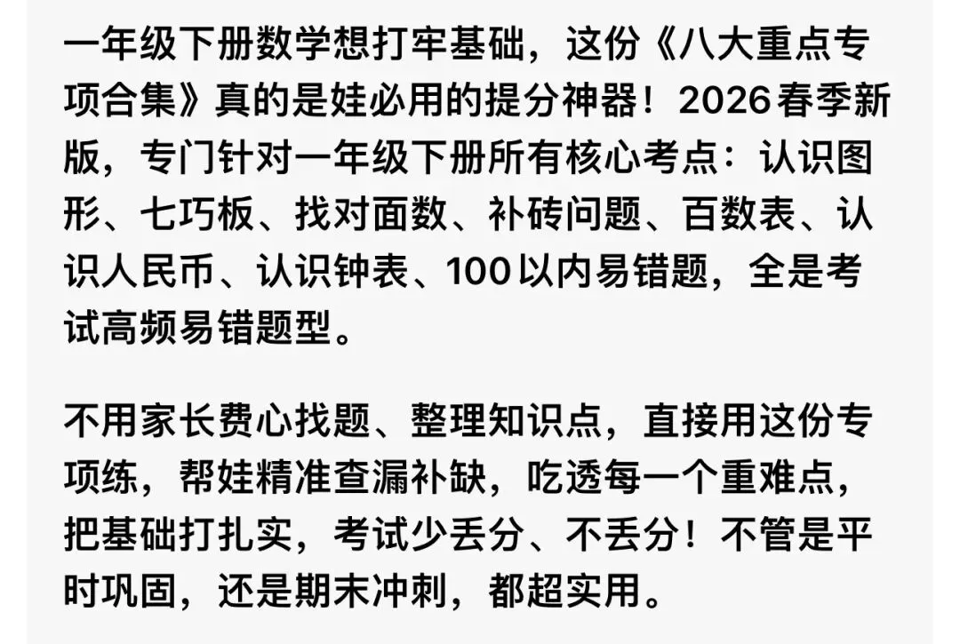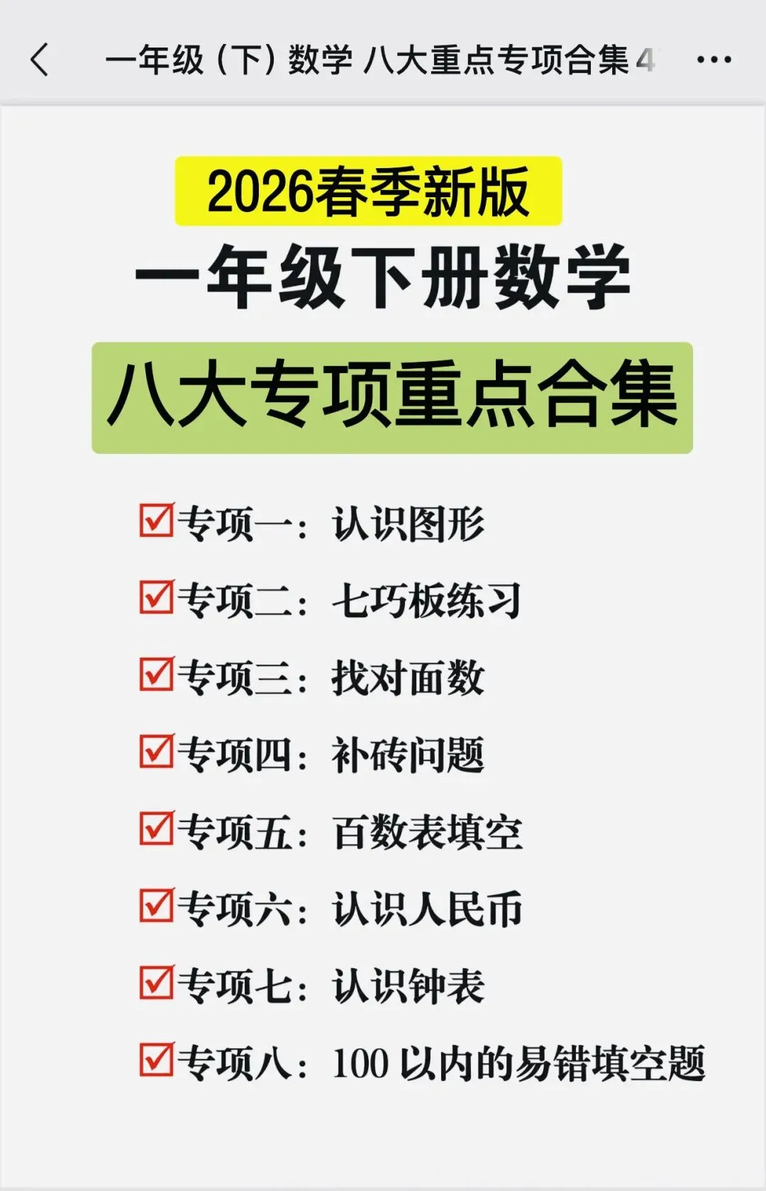 一年级下册数学八大专项重点合集(可打印)2026春季新版必刷