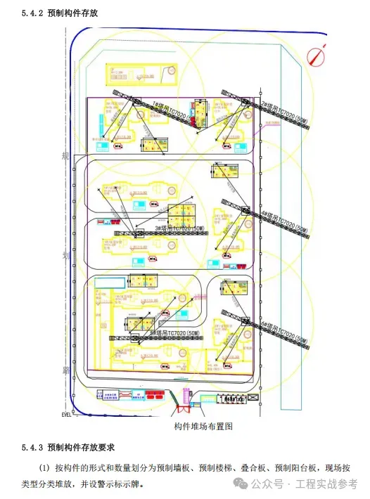 根据现场实际情况,以及塔吊吊次计算,运输构件车辆到场后通过塔吊周转将构件吊运至车库顶板堆放区,构件堆放去采取封闭式管理,该区域车库顶板采用钢管回顶方式来承担构件本身的荷载。