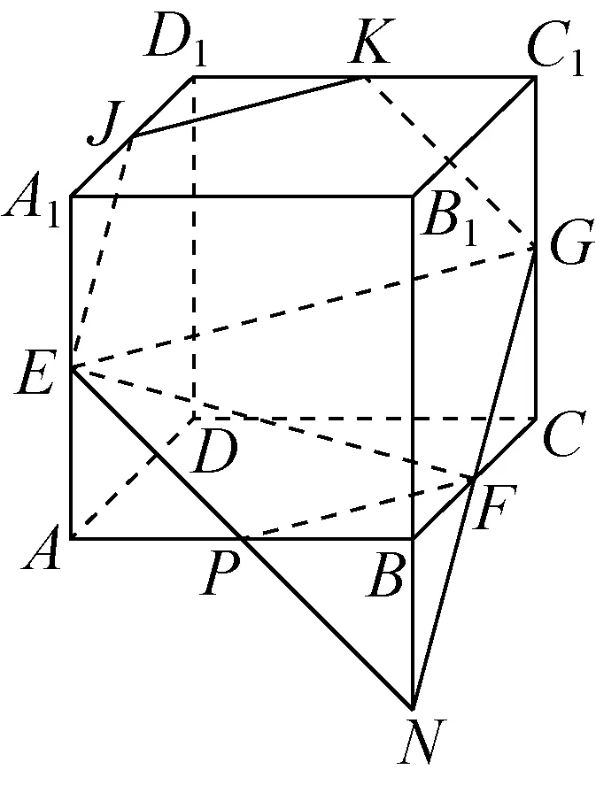 例1 (1) 在棱长为1的正方体ABCD-A1B1C1D1中,E,F,G分别为棱AA1,BC,CC1的中点,则平面EFG被正方体所截得的截面面积为__34__.