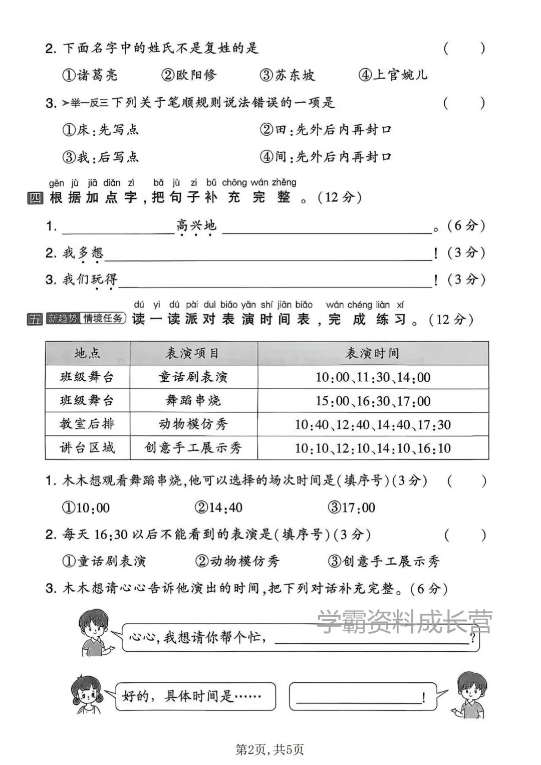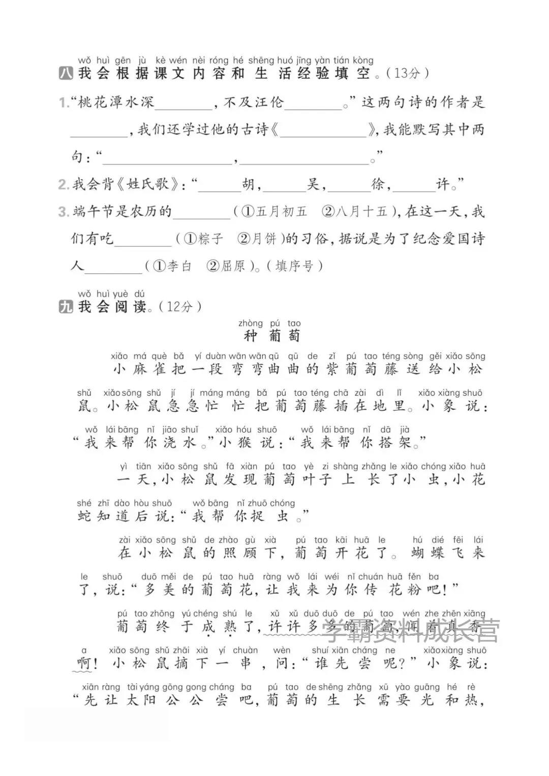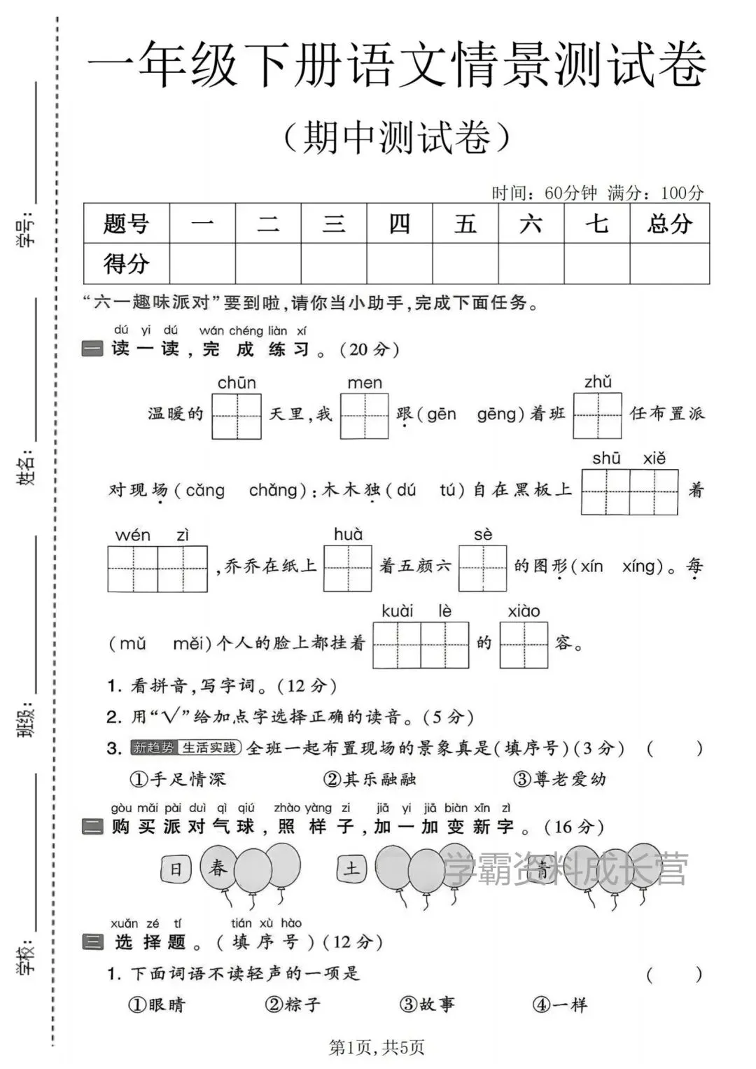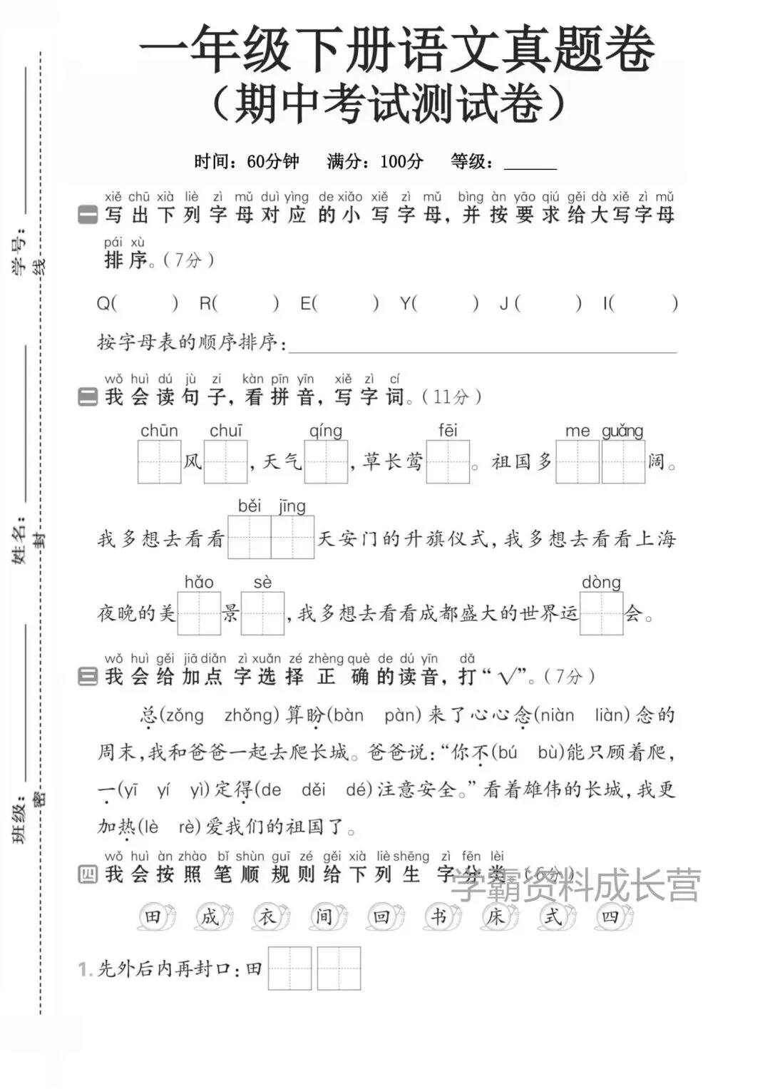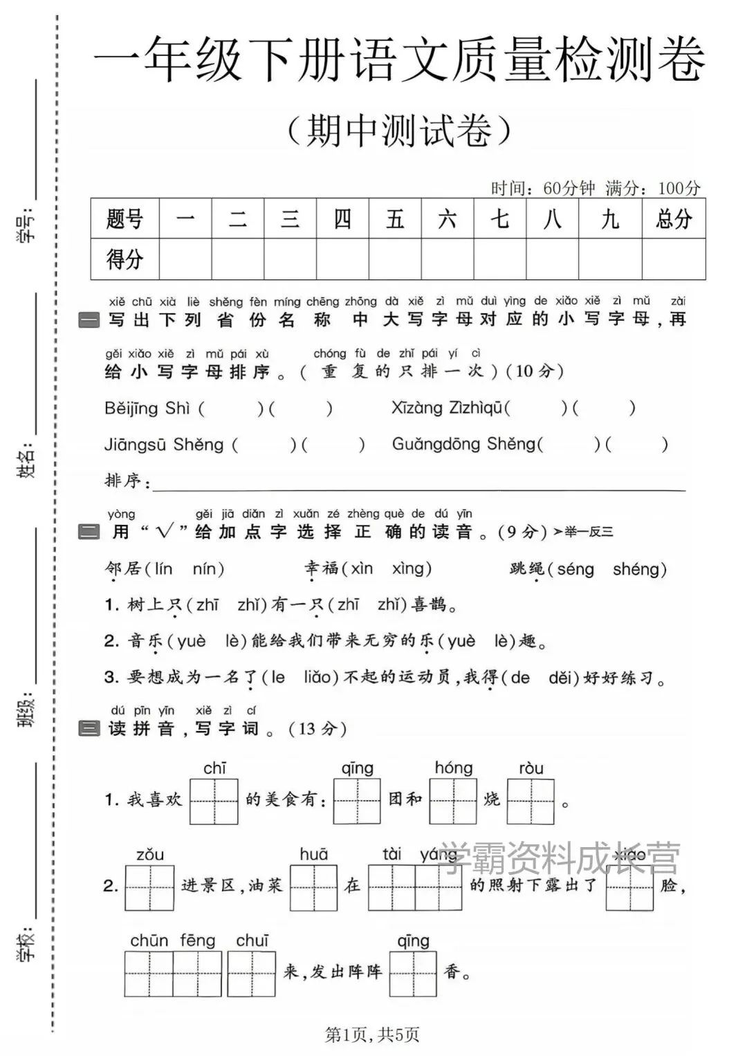 2026年新版一年级下册部编版语文期中考试精选试卷(3套附答案),电子版可打印!这套资料可以检验这个学期学习成果,包含常考看拼音写词语,常考必背知识点,希望对孩子们有所帮助。需要的家长抓紧打印出来,让孩子在练一练