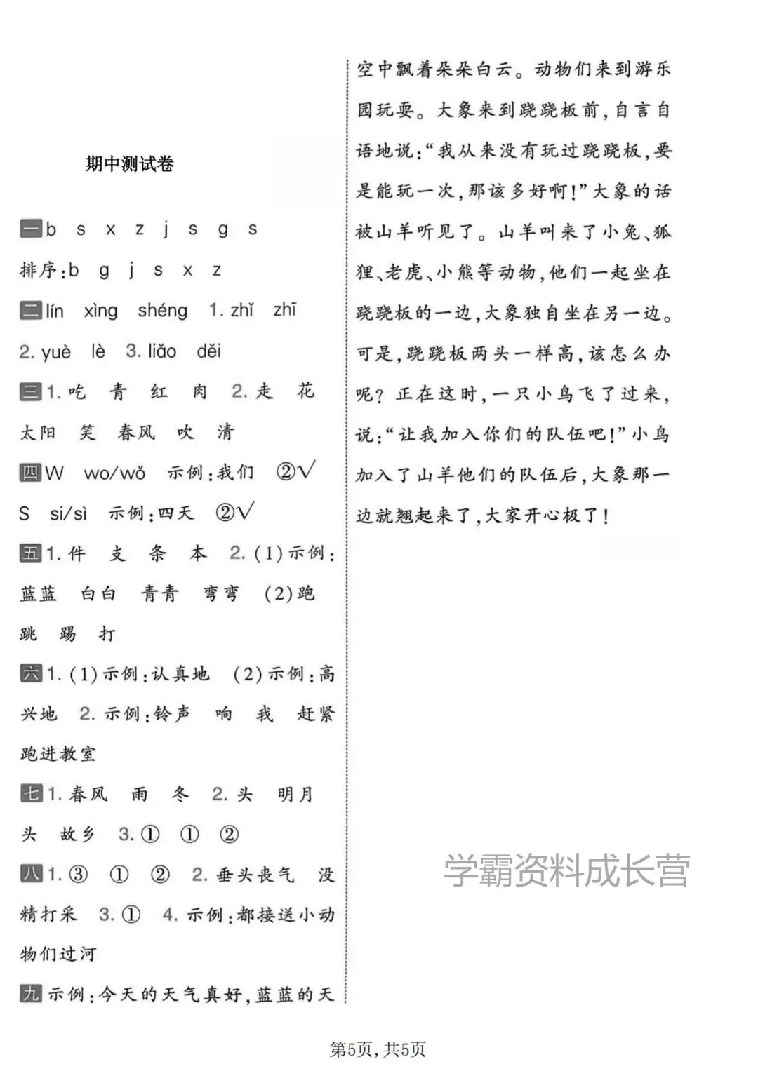 2026年新版一年级下册部编版语文期中考试精选试卷(3套附答案),可打印!