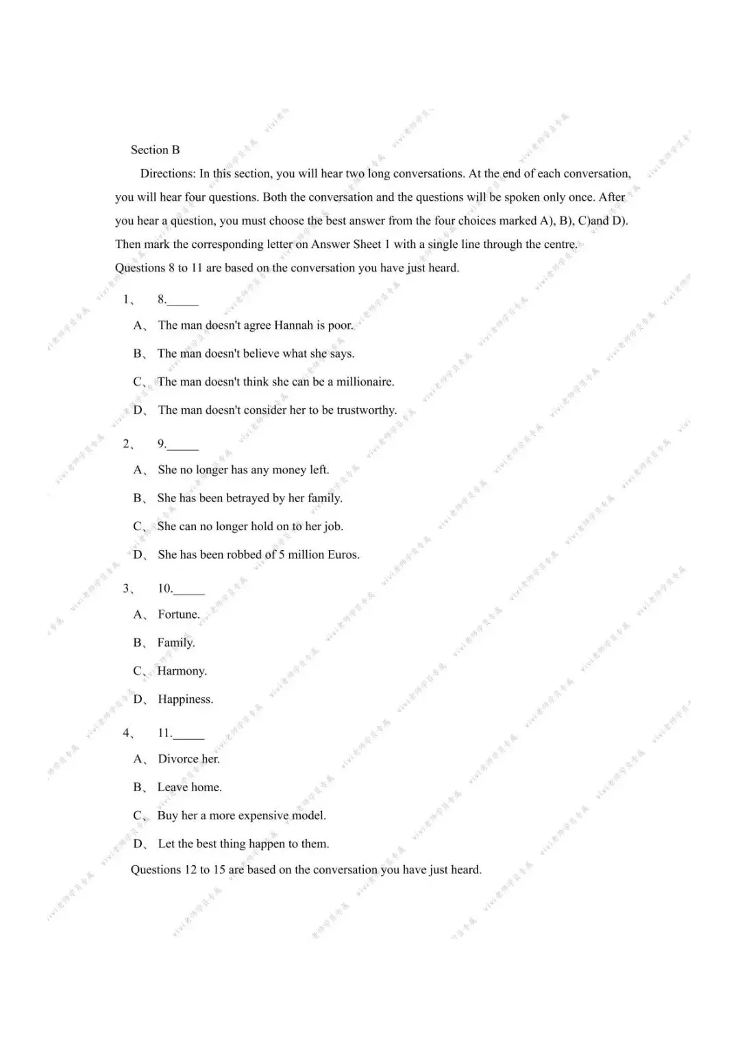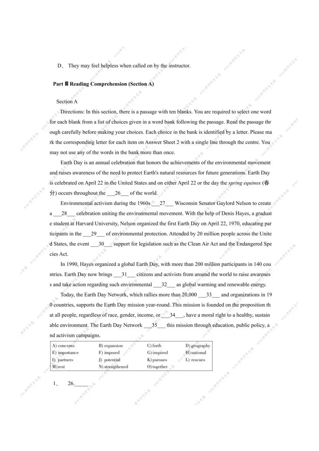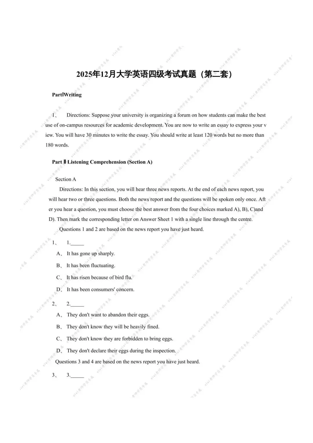 2025年12月第二套(后附电子版) 每日一卷更新到25年就结束喽~ 如果想要15年-22年的试卷及解析,可以后台发送“英语四级” 就可以拿到完整链接啦! 听力: 真题: 答案及解析: 电子版自取: 我用夸克网盘给你分享了「25年12月四级…第二套)」等2项,点击链接或复制整段内容,打开「夸克APP」即可获取。 /~f75d3XzSNU~:/ 链接:https://pan.quark.cn/s/98bec77d26ce