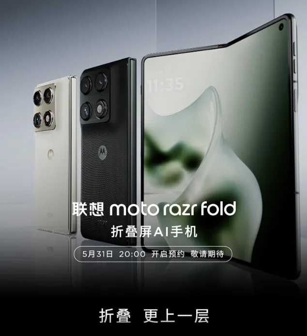 摩托罗拉首款大折叠屏手机 moto razr fold 已于各大电商平台上架,页面显示将于 5 月 31 日正式开启预约。