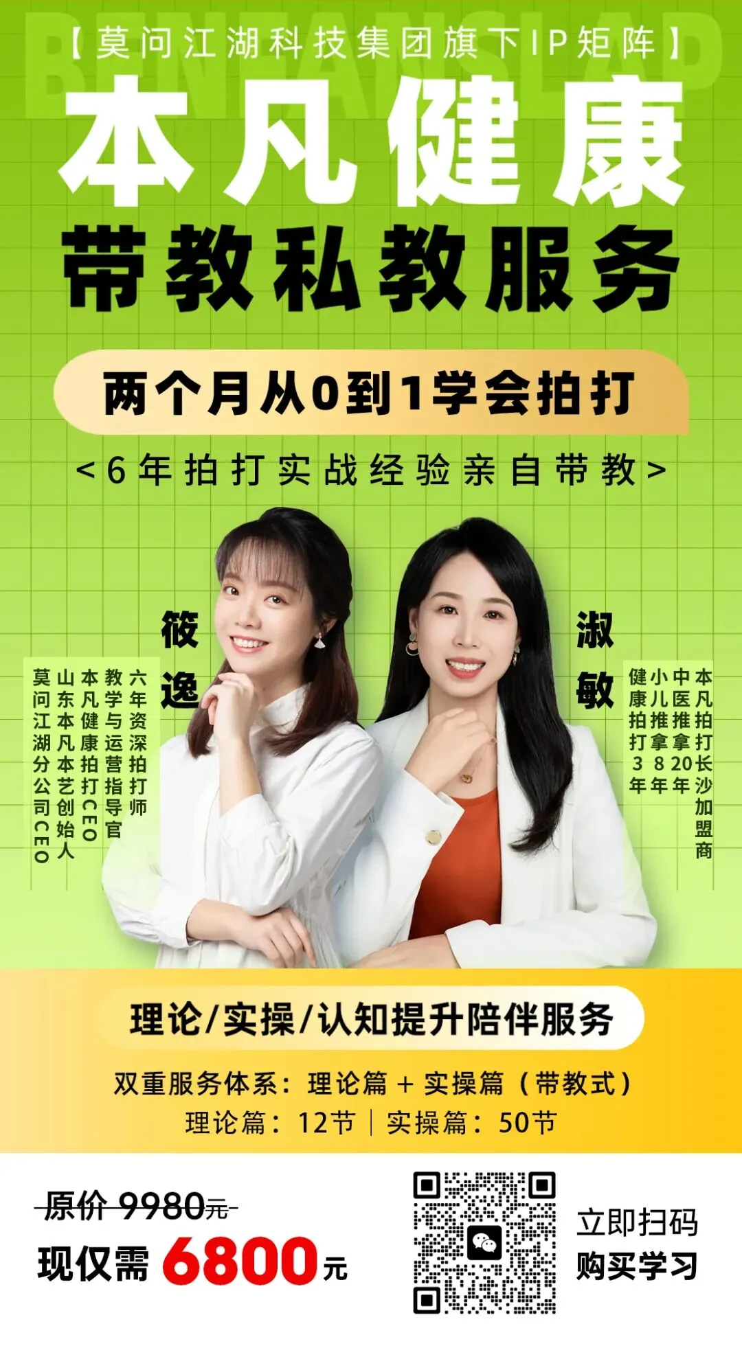 无论是全职宝妈想增加副业收入,还是从业者想提升技能,亦或是普通人想调理身心,拍打都是一门简单、有效、无需昂贵器械的手艺。