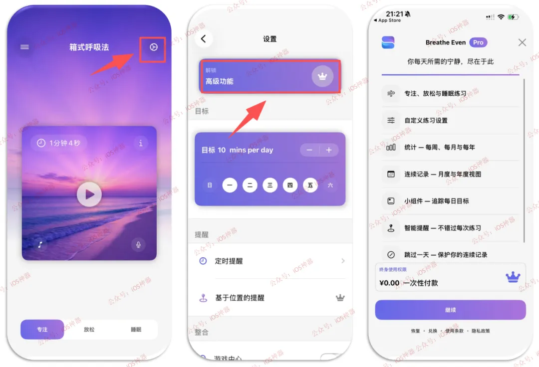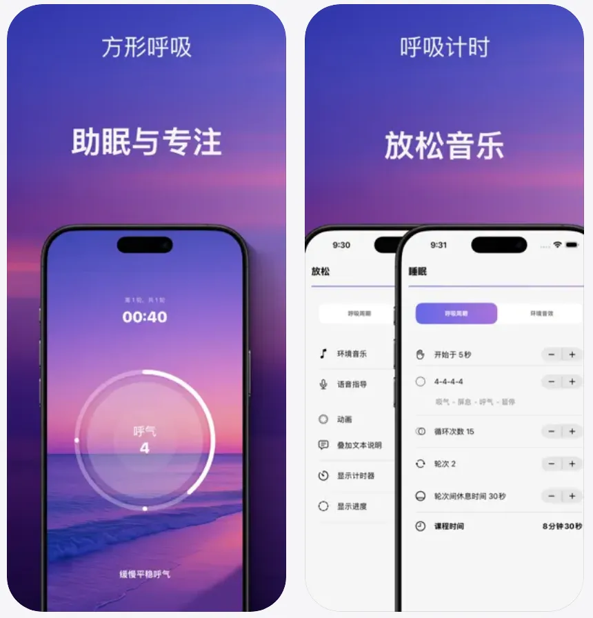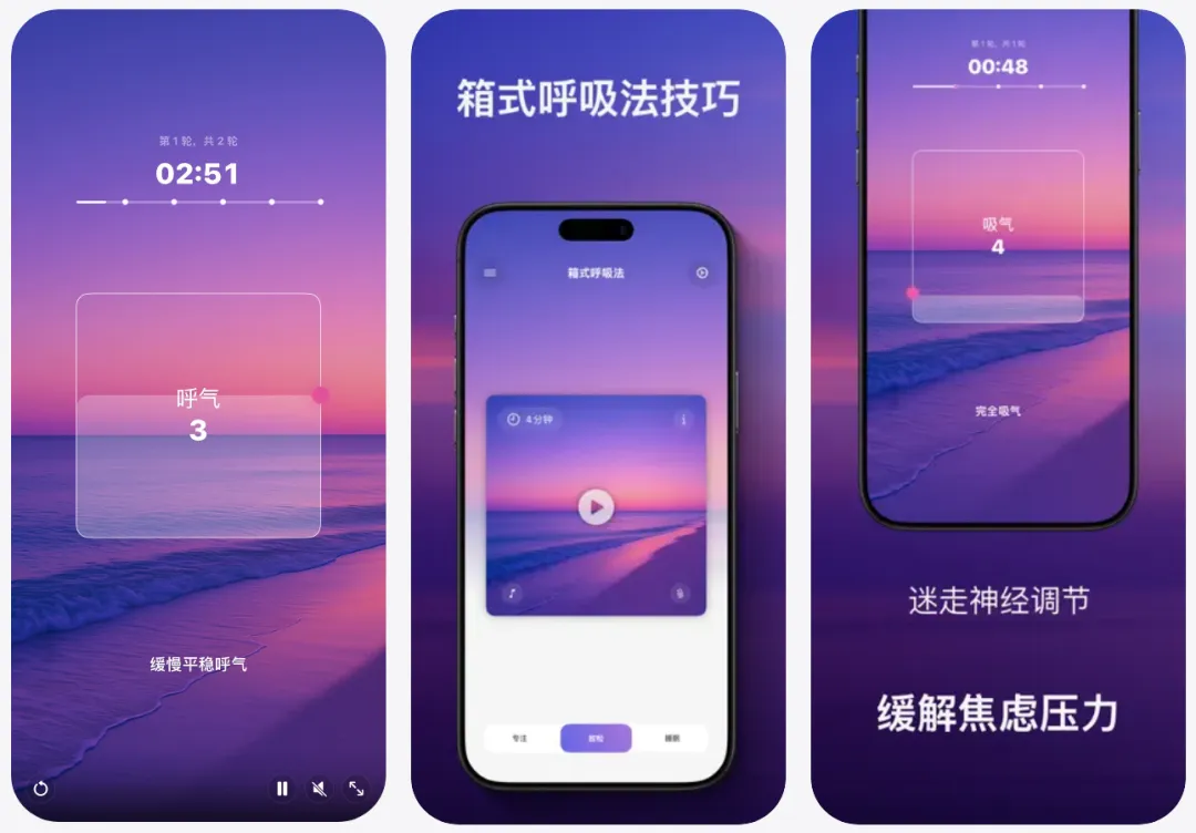 hi果粉们,一款解压助眠神器!主打 4-4-4-4 箱式呼吸法,引导呼吸平复焦虑,超治愈。App Store 正版上架,限时内购限免,请放心使用!