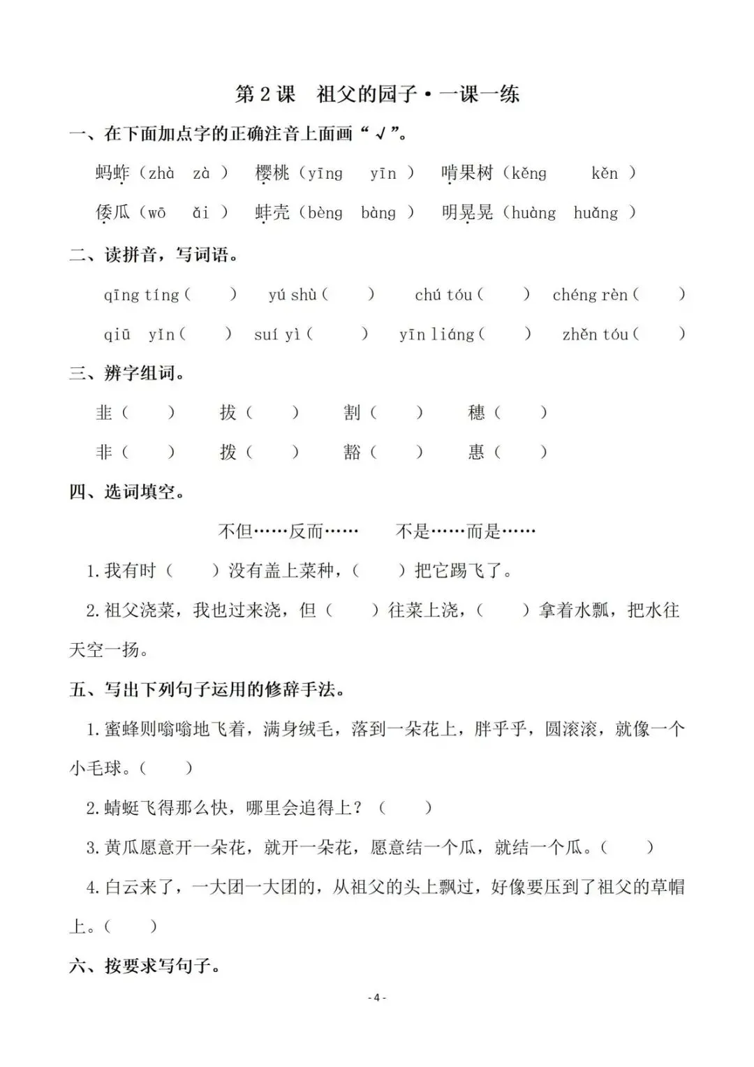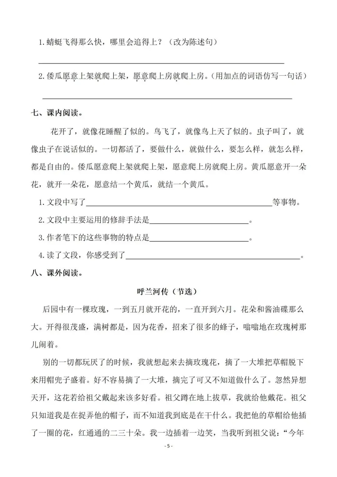 人教部编版语文五年级下册一课一练【可下载可打印】