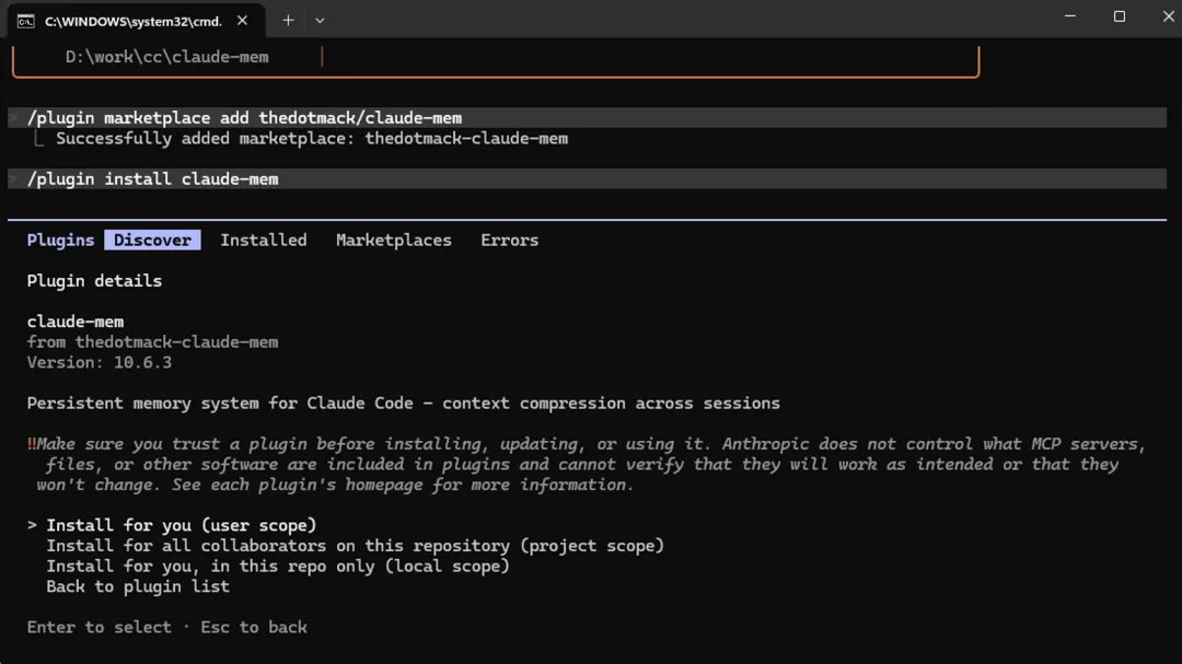 /plugin install claude-mem