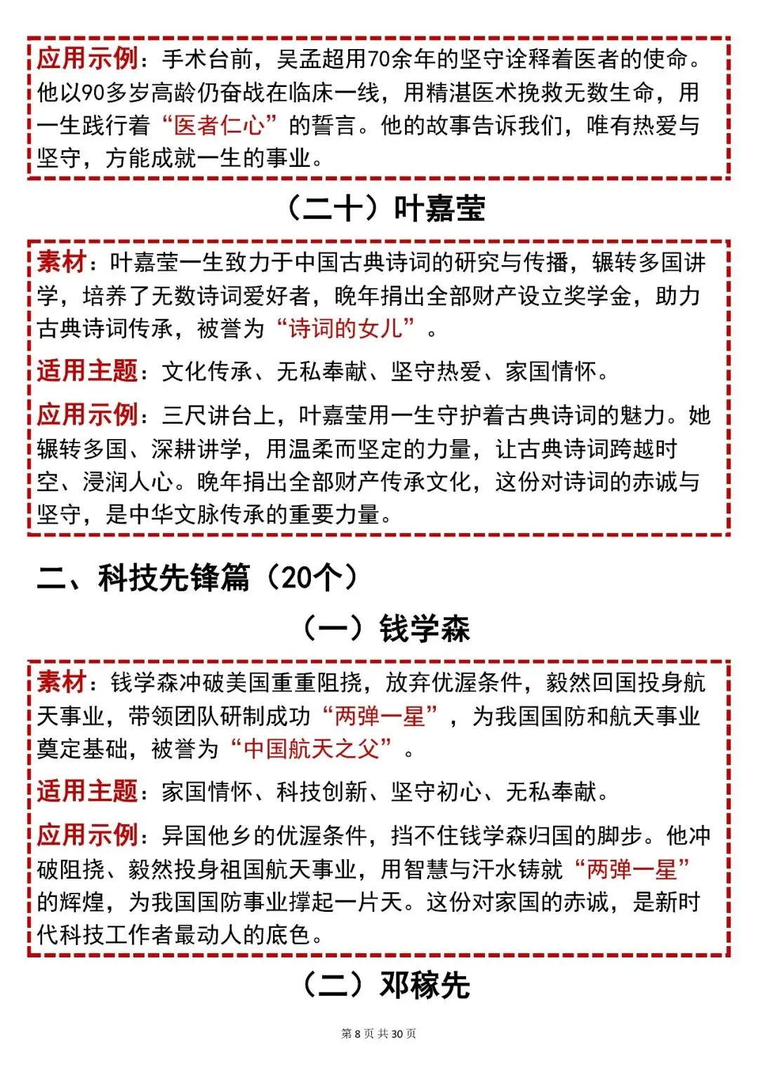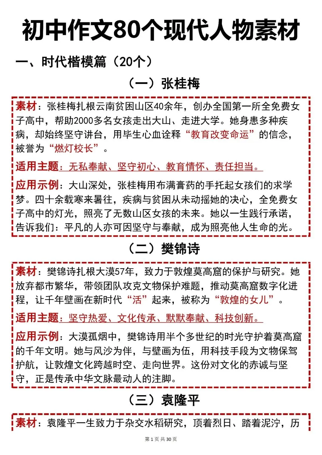 今天给大家整理了三年都用得上的【80个现代人物素材】,涵盖十佳人物,物理学家,研究人员,运动员等多元主题,不管遇到什么题型,都能快速借鉴结构、积累素材、优化表达,轻松拿下作文高分!
