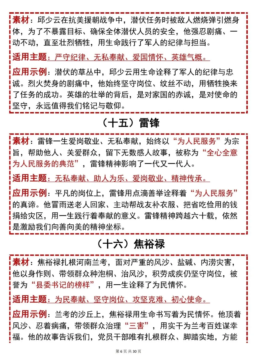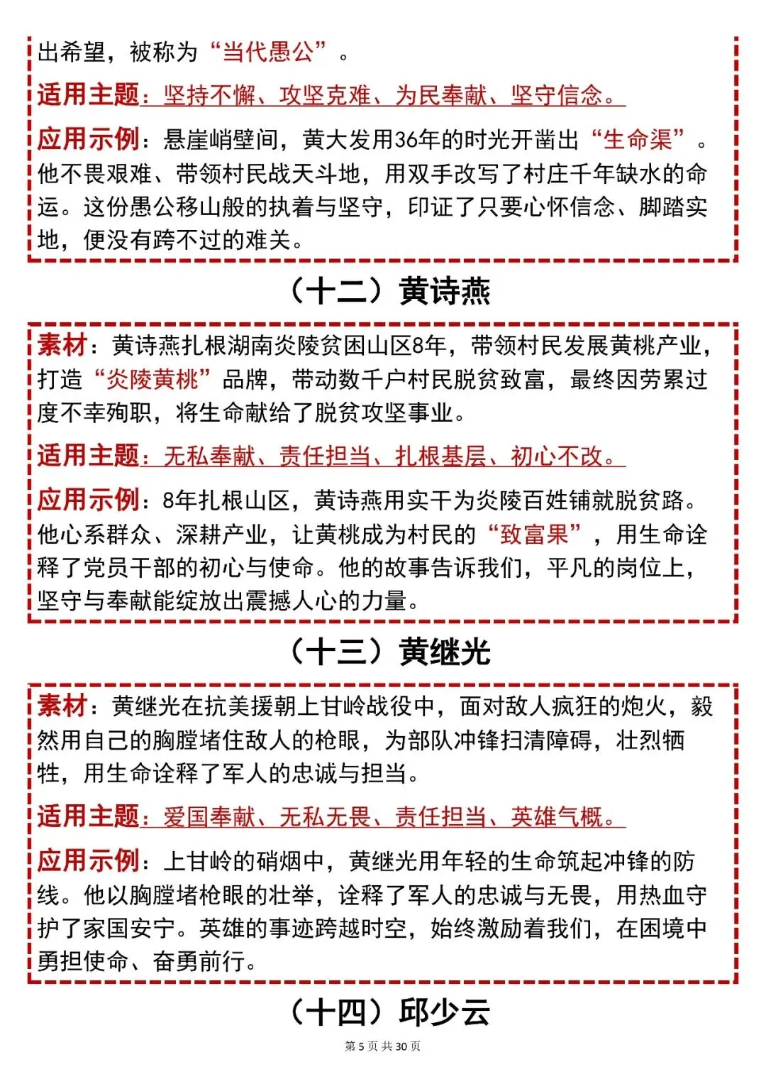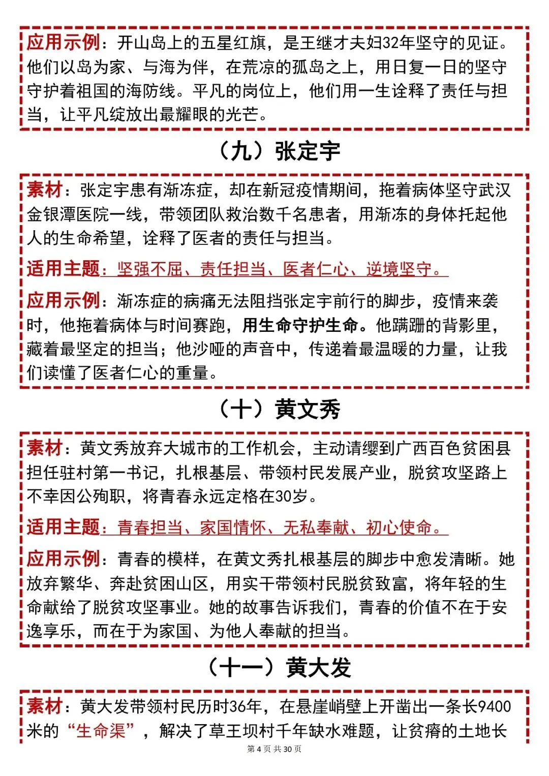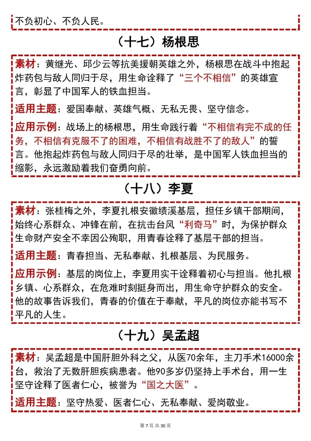 中考语文必背【80个现代人物素材】,可打印 快收藏