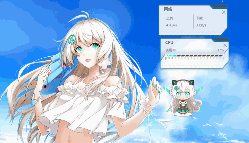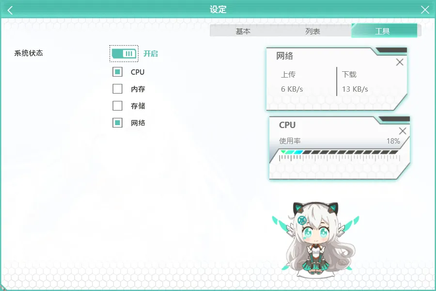 除了桌面宠物,其实还有别的功能,比如上图中的CPU占用显示、网速显示等,在设置里面可以设置CPU、内存、网络和存储显示,除了占用的显示面积略大外其它还好