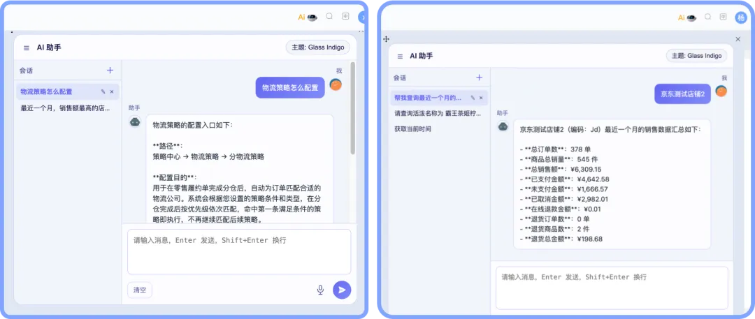 例如:查询知识库,产品操作手册和Q&A;查询报表,销售报表、商品报表等。查询当前登陆账号有权限的信息数据,比如查询实体仓库存/订单和Hold单策略。