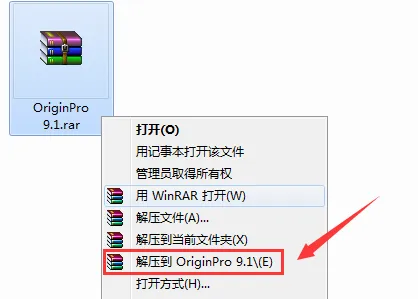 1、鼠标右击软件压缩包,选择“解压到Origin 9.1”。
