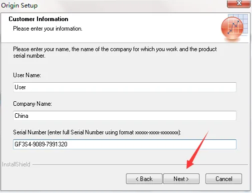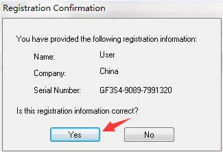 6、任意输入用户名、公司名称,注册码输入GF3S4-9089-7991320,然后点击“Next”。