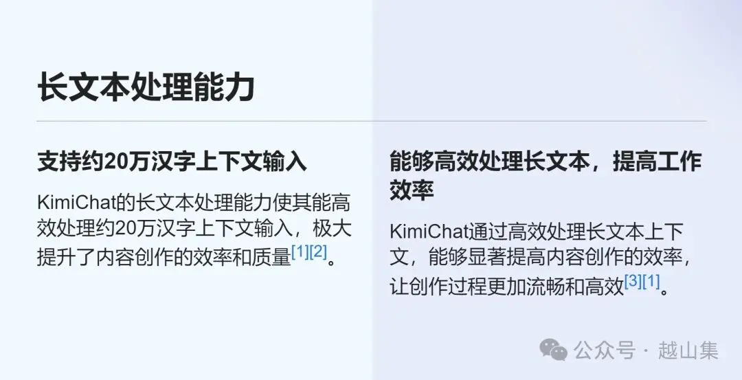 通过语义理解、问题分析、全网搜索对信息进行总结提炼,生成清晰、重点突出的答案。 -
