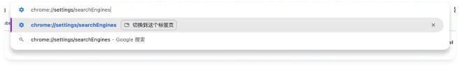 chrome://settings/searchEngines并按回车键进入搜索引擎设置页面;