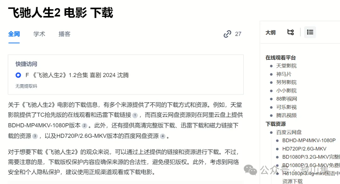 既然图和图书都能搜索,那电影,MV什么的也能搜索吧。还真是。本质就是一全能网盘搜索。下载资源给了,在线访问的平台也都给列出来了。我要吹爆它了。好吧,你能想到的所有资源,都可以试下,要是有新发现,别忘回来留言。