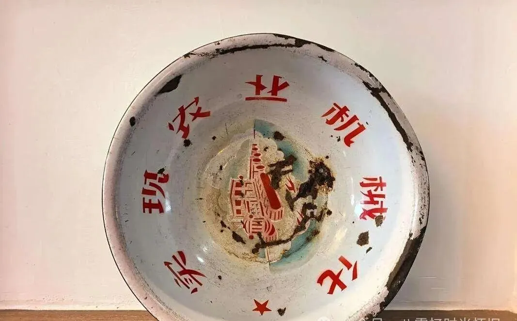 这个带着大红标语的盆叫搪瓷盆,图案掉漆斑驳,看着没啥稀奇,可以前家家户户天天见,早晨端水洗脸,中午洗米淘菜,哪哪都能用上,小时候我总爱拿着它满院跑,边沿又黑又豁口,刮掉瓷还不舍得扔,有次刚洗完手直接装上玉米糊糊端厨房,奶奶在旁边唠叨着说“别摔了,家里只剩俩了”,盆中心常画着小红星,边上字还带点褪色,那点劲头就是那个年代最朴素的味道。