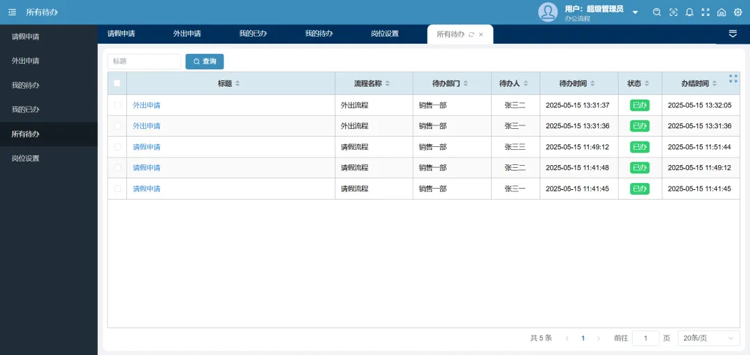 流程引擎:内置BPMN节点,只需配置处理人、分支条件即可实现复杂的业务流转。