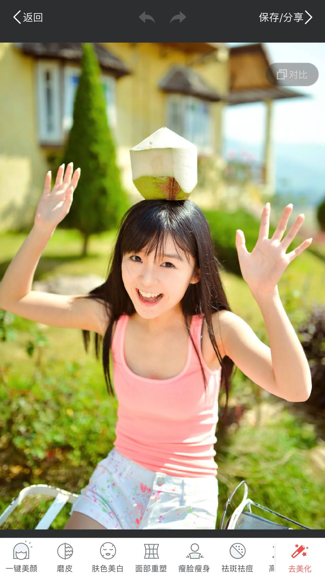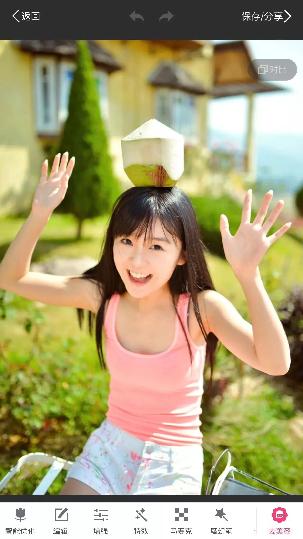 它还有一个功能,非常适合怕麻烦的朋友,叫一键美颜,觉得不错点保存就行啦。