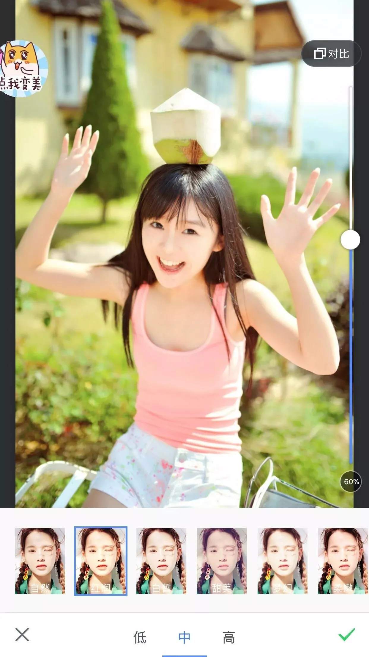 美图秀秀最好用也是用得最多的功能就是美化图片和人像美容(俗称美颜)。美颜的程度,我一般都会选中等程度,自然不做作。