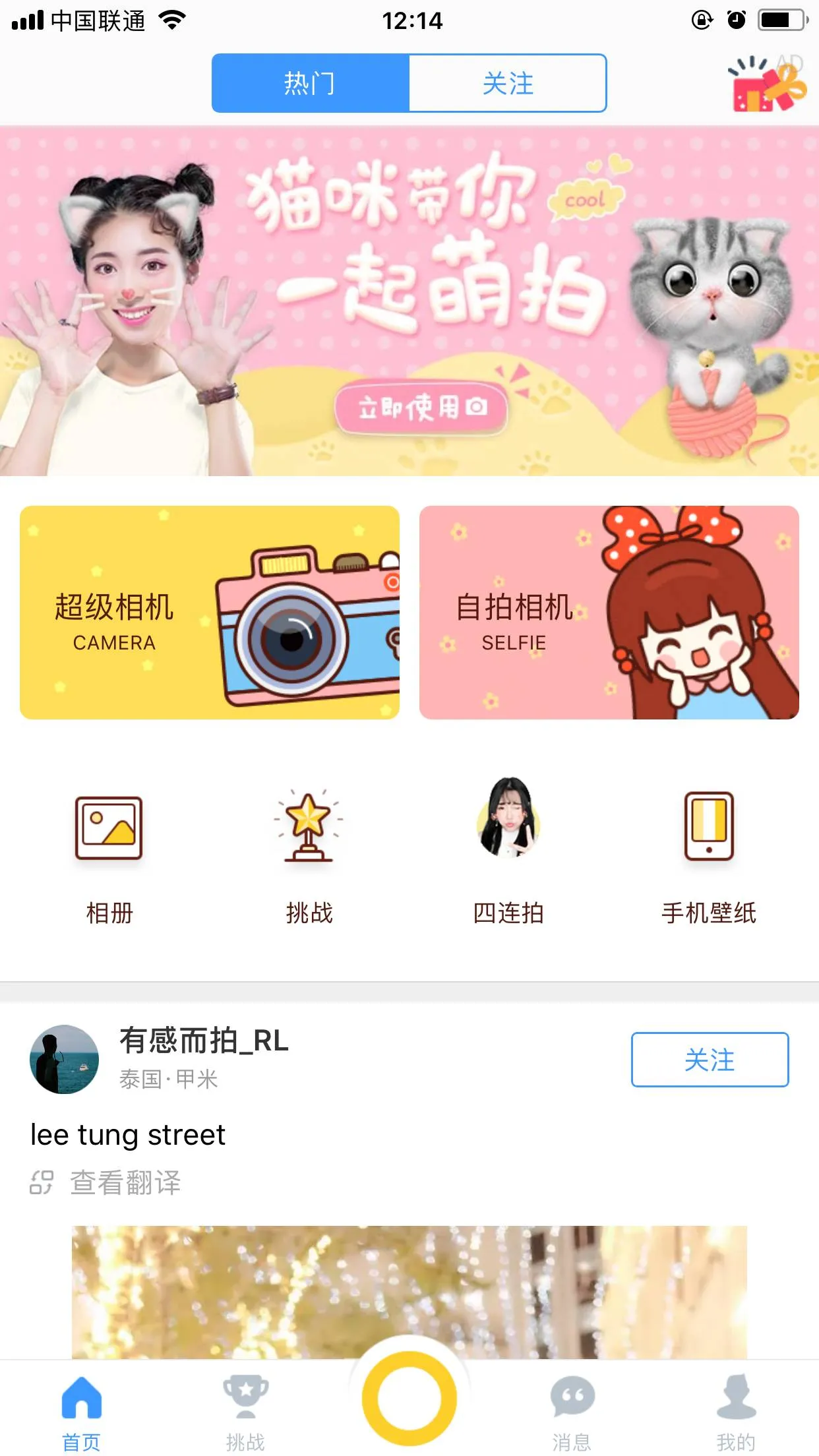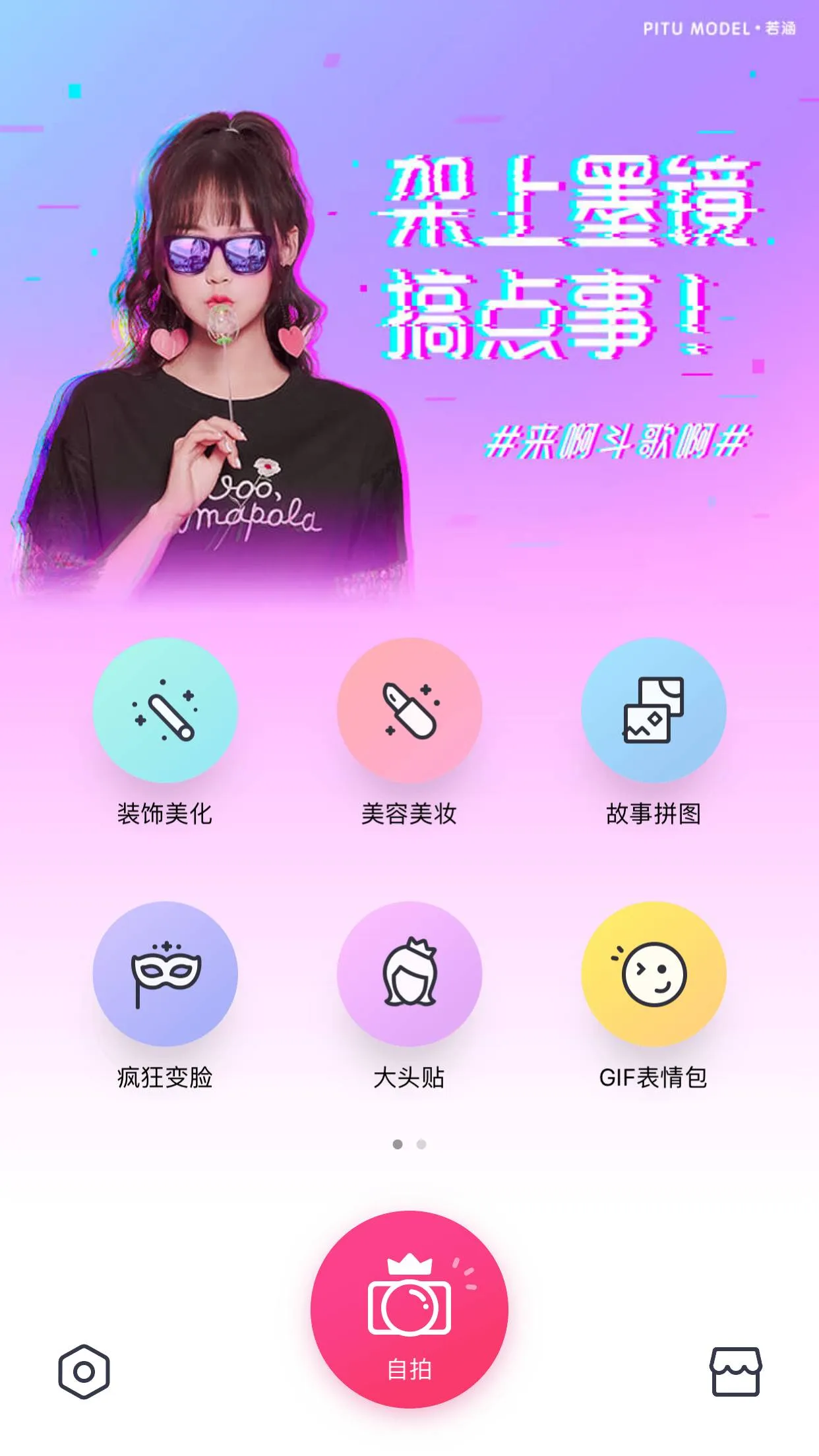 还能给自己戴个帽子,演个猫什么的,实时加入表情和贴图。磨皮也有韩式啊约会啊很多种,总之一句话,别人有的它都有,别人没有的它也没有,功能跟很多APP冲突,没有高潮。