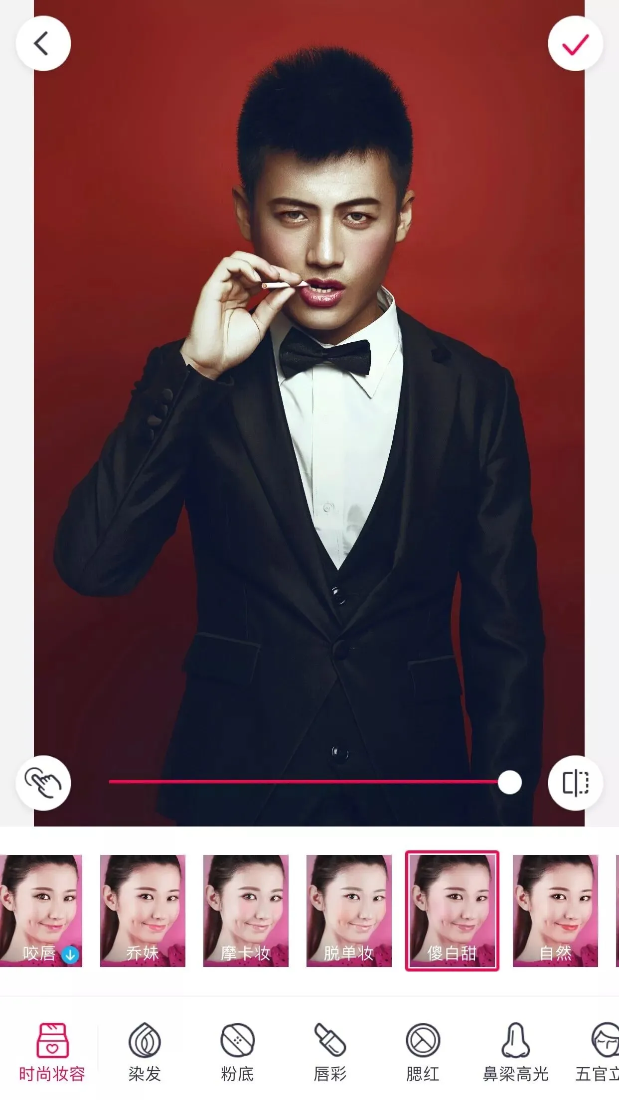 虽然这个抠图虚化的功能聊胜于无,但是如果照片层次太平,也可以用起来。给头发换个颜色,或者化个电子妆,非常适合没啥可修的了又手痒的同学们。