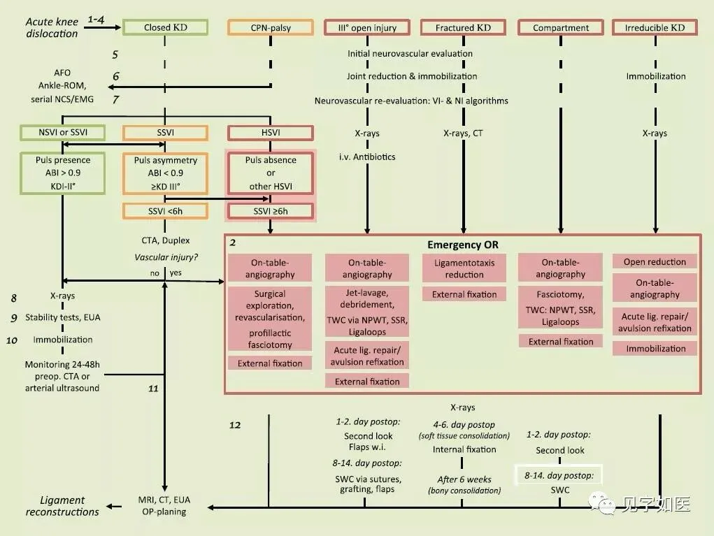 参考文献:Alexander Maslaris.et al.Management of knee dislocation prior to ligament reconstruction:What is the current evidence? Update of a universal treatment algorithm.European Journal of Orthopaedic Surgery & Traumatology (2018) 28:1001–1015