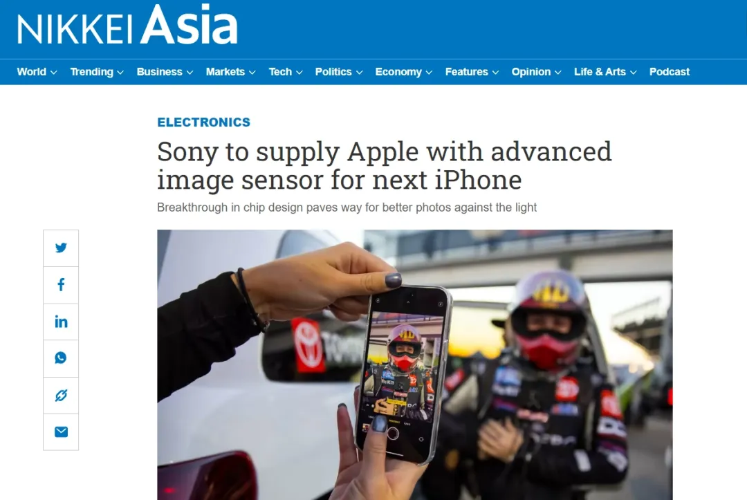 据《日经新闻》报道,苹果即将推出的 iPhone 15 将配备索尼最新的“最先进”图像传感器。