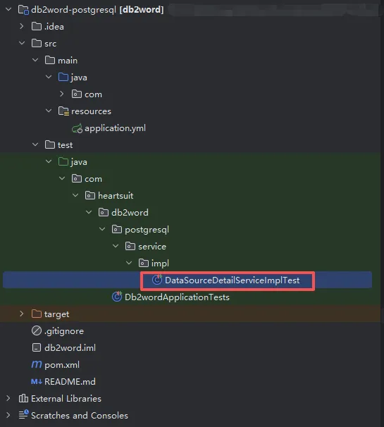打开test文件夹下的测试类DataSourceDetailServiceImplTest。