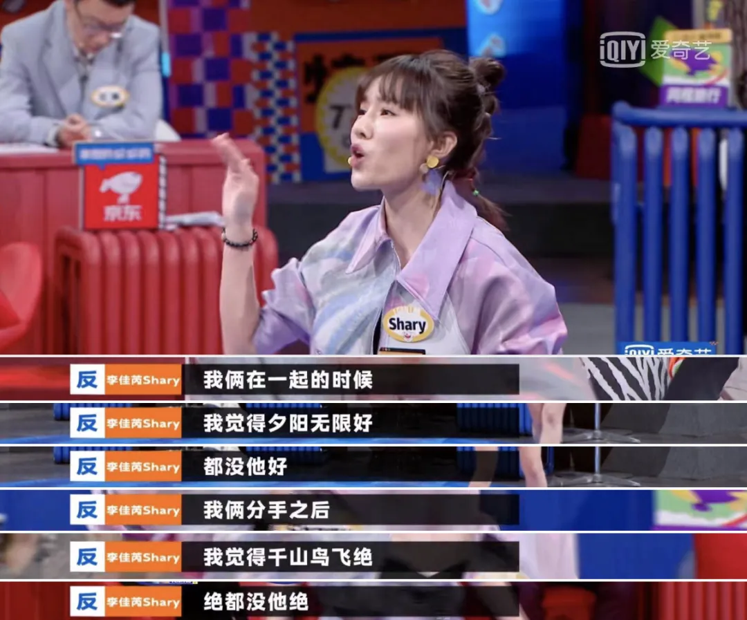 当然还有让人印象很深刻的,Shary那句“我俩在一起的时候,夕阳无限好都没他好;我俩分手以后,千山鸟飞绝都没他绝!”