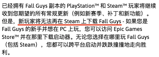 虽然老玩家尚且还能继续玩,但当大家开始回忆起,自《糖豆人》母公司,被Steam竞争对手Epic收购后。
