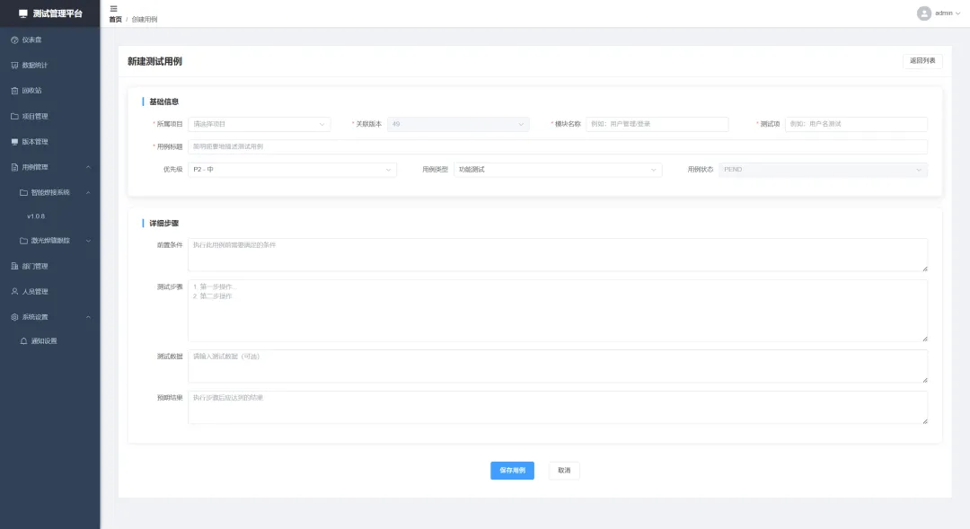 本系统是一款 高性能、企业级 的测试用例全生命周期管理平台。基于vue3 + Django开发,旨在解决传统测试工具在大数据量下卡顿、操作繁琐、数据追溯困难等痛点,为测试团队提供 极速流畅、安全可靠、可视化 的协作体验。