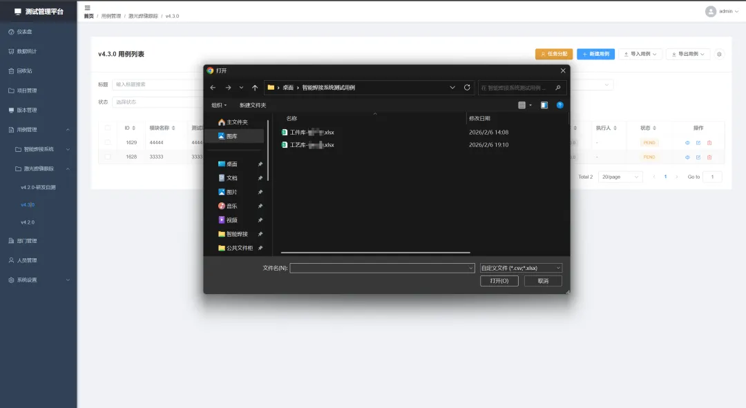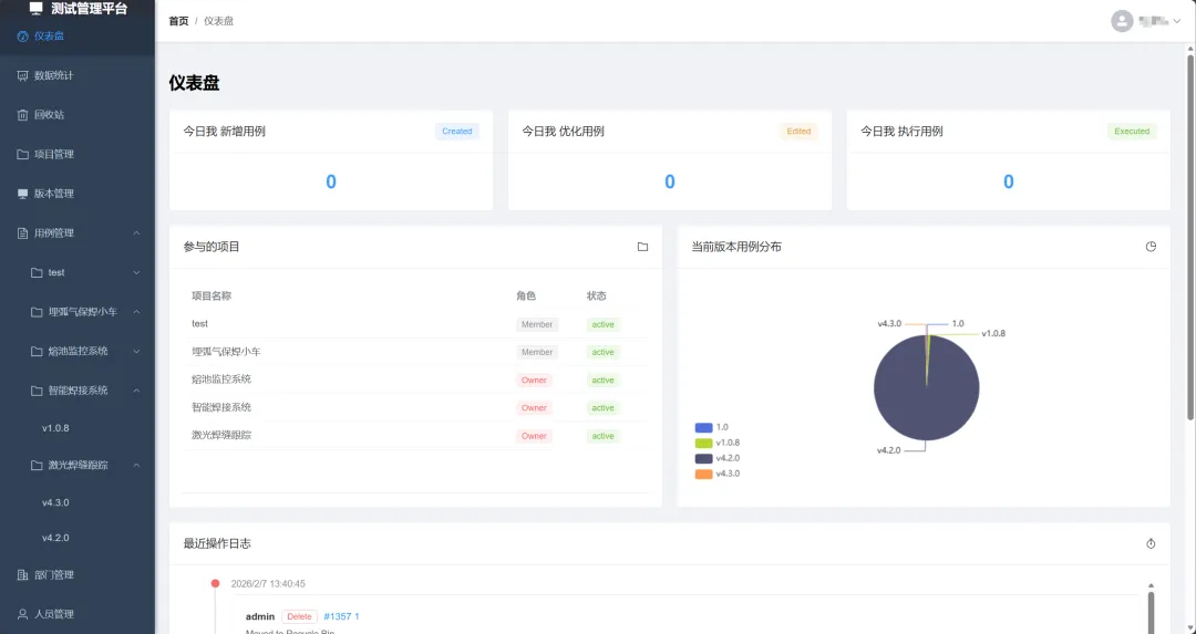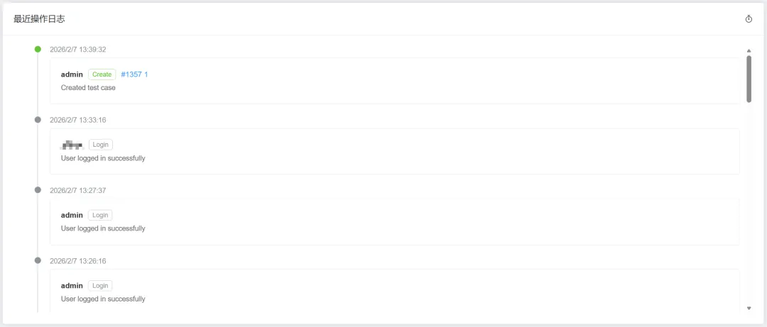 • 操作审计:仪表盘集成详细的 用户行为日志,覆盖用例增删改、任务分配、导入导出等所有关键动作。 -