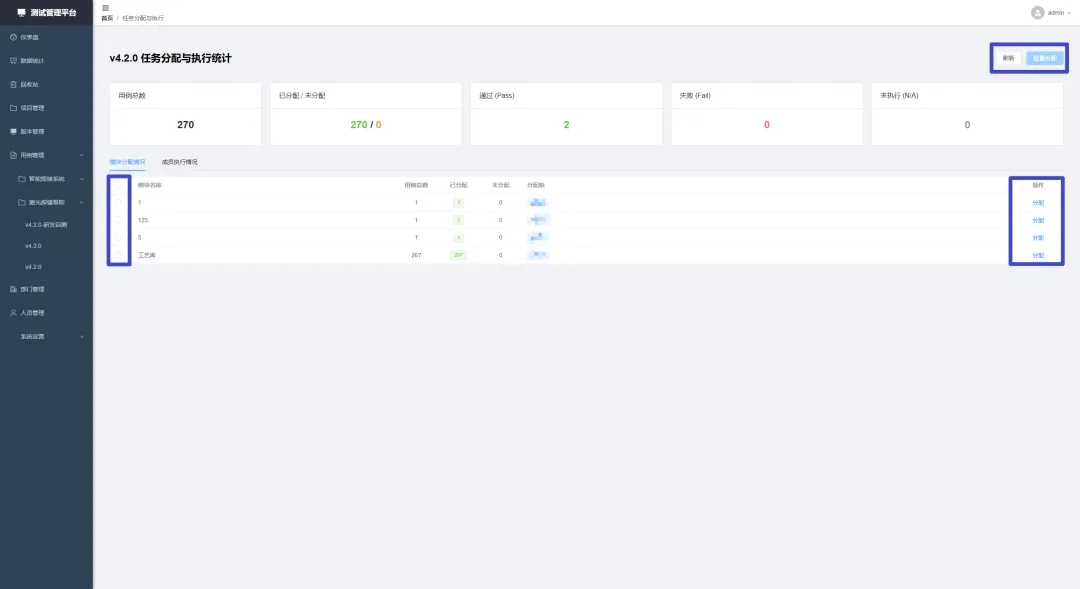 • **任务分配:**将已有的测试用例,合理分配给测试人员执行。