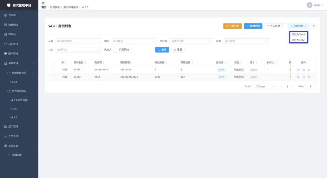 可以将测试用例导出为excel和csv文件