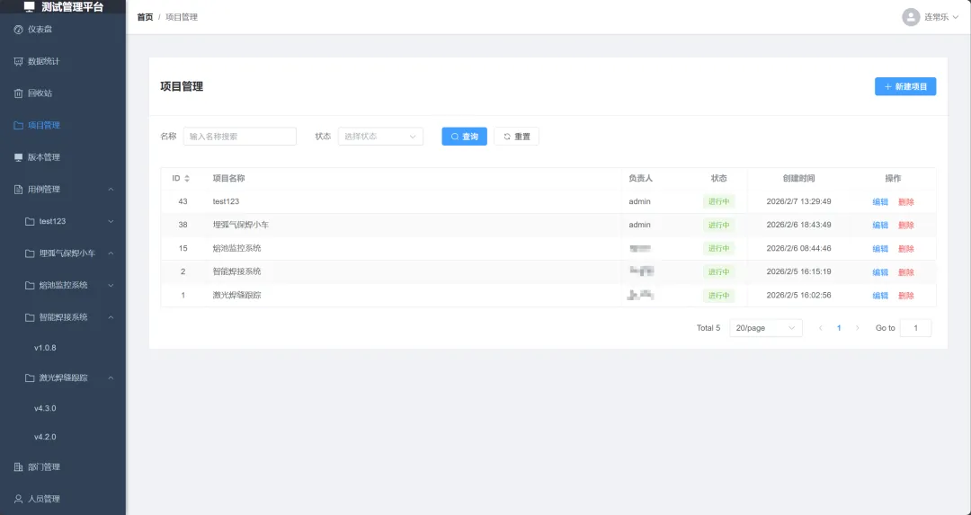 **功能说明:**新建测试项目并分配项目成员,对用的测试成员,才有权看到对应的测试用例,非项目成员无法拆看对应项目的测试用例。