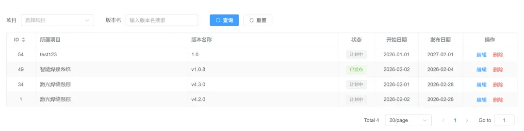 版本管理列表