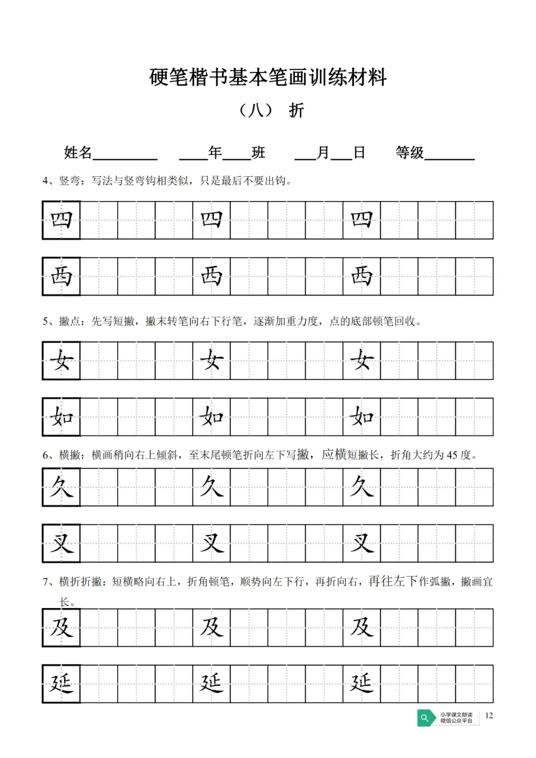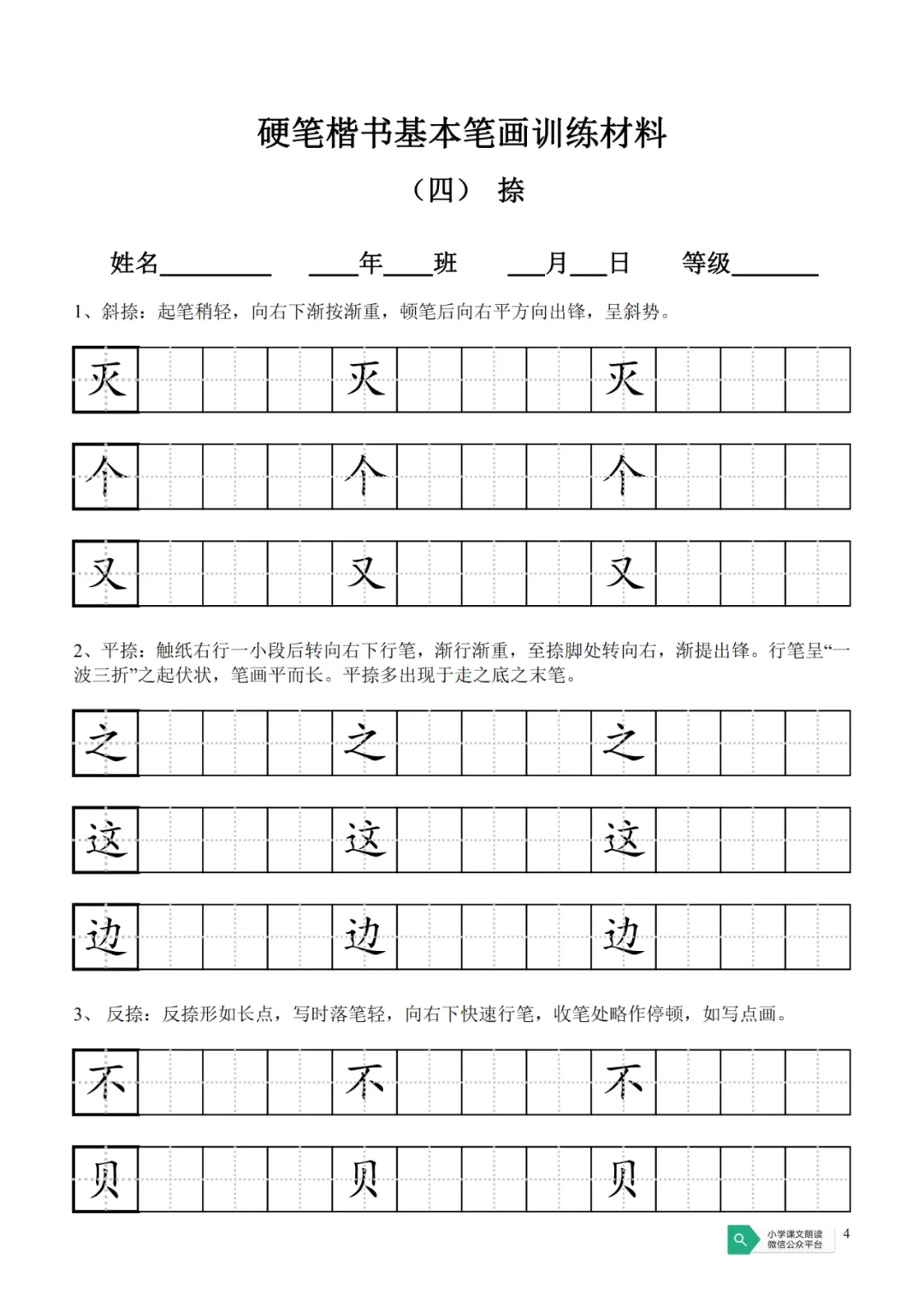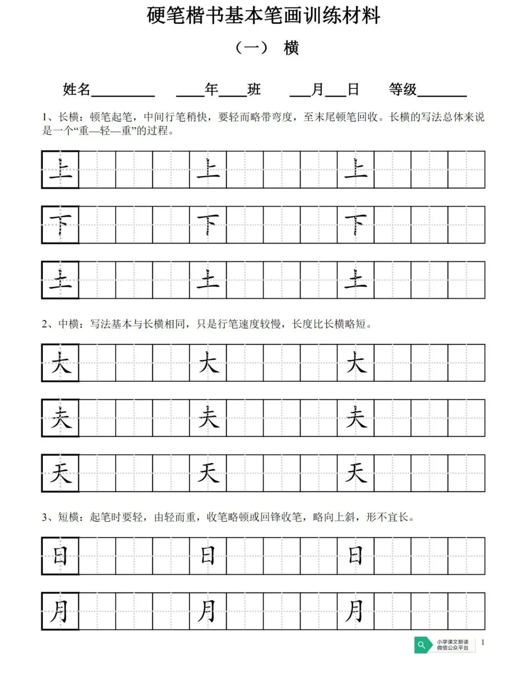 寒假练字全攻略+田字格笔画训练(可下载) 俗话说,见字如面,字如其人。让孩子趁寒假练一手好字,可以终身受益!横、竖、撇、捺怎样写才凝练大气?老师为您整理寒假零基础练字全攻略,快让孩子学起来! 1.规范写字入门合集 规范写字入门合集(附执笔+书写) 2.练 习 下载文档(两种方式) 1.长按上方图片识别小程序码 2.点击文末阅读原文 输入提取码:xoya 声明:本公众号尊重原创,素材来源于网络,好的内容值得分享,如有侵权请联系删除。