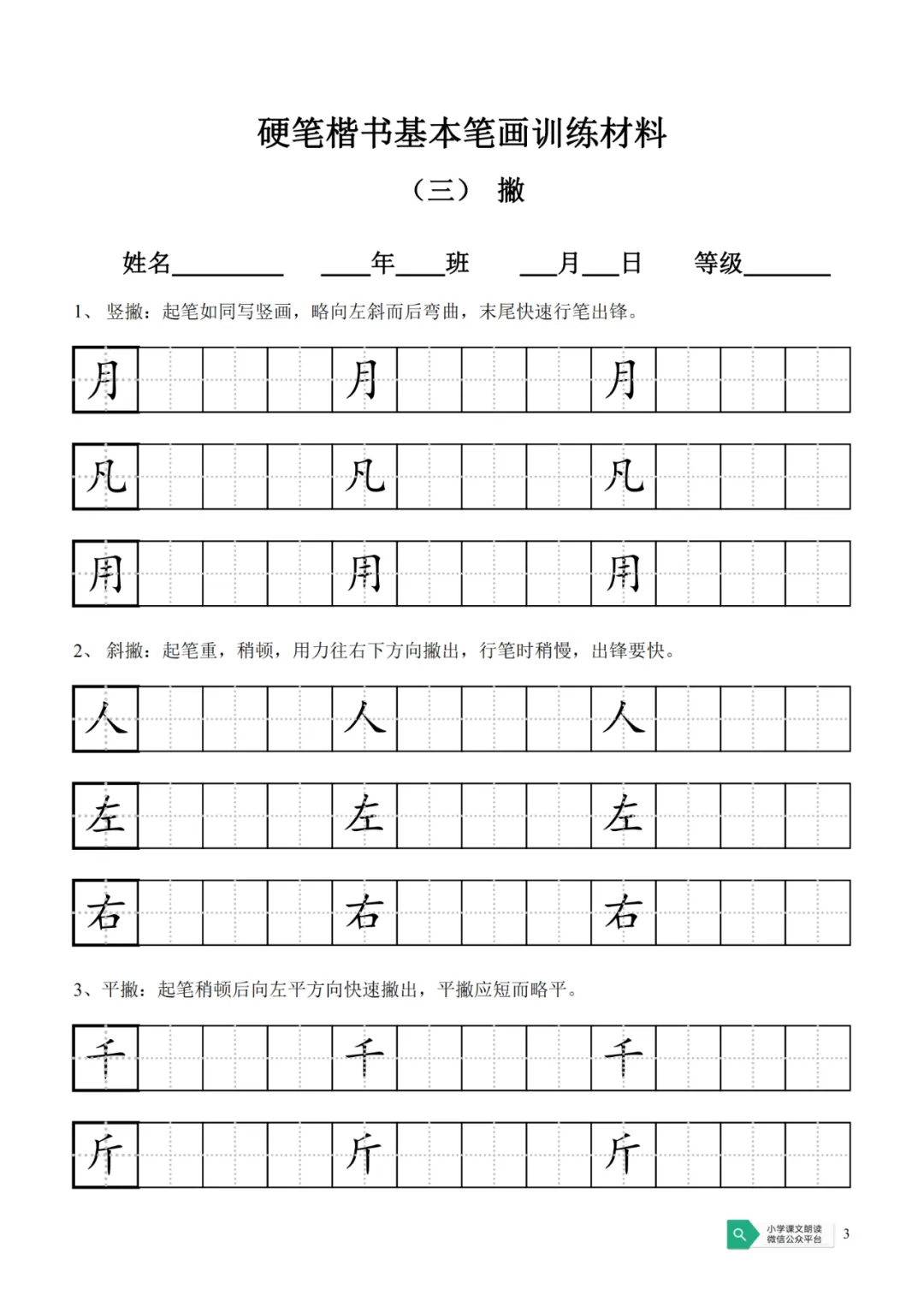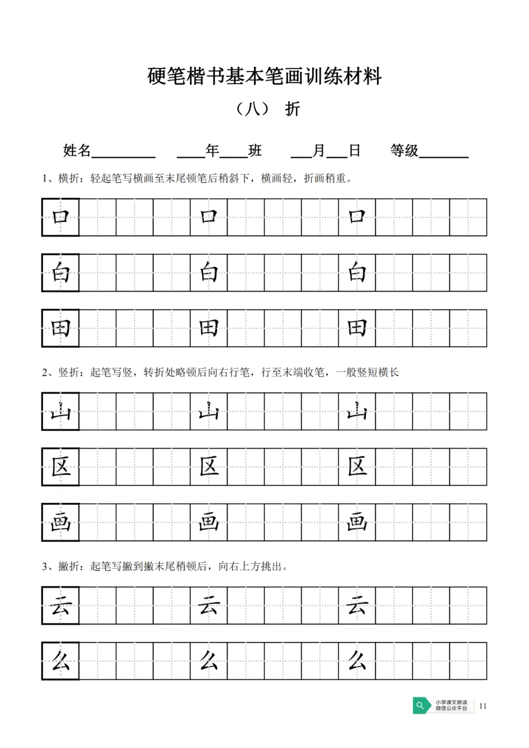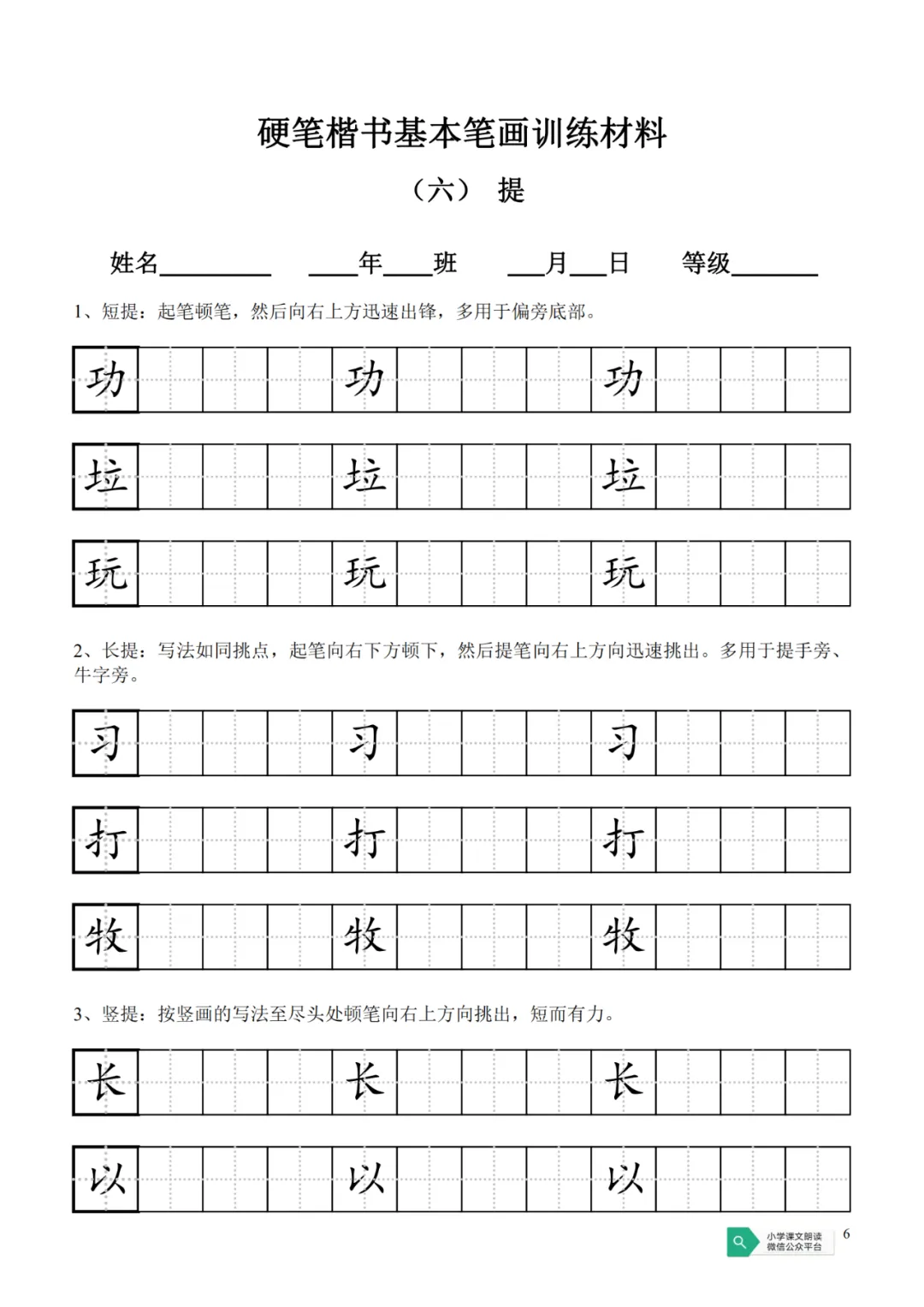 寒假练字全攻略+田字格笔画训练(可下载) 俗话说,见字如面,字如其人。让孩子趁寒假练一手好字,可以终身受益!横、竖、撇、捺怎样写才凝练大气?老师为您整理寒假零基础练字全攻略,快让孩子学起来! 1.规范写字入门合集 规范写字入门合集(附执笔+书写) 2.练 习 下载文档(两种方式) 1.长按上方图片识别小程序码 2.点击文末阅读原文 输入提取码:xoya 声明:本公众号尊重原创,素材来源于网络,好的内容值得分享,如有侵权请联系删除。