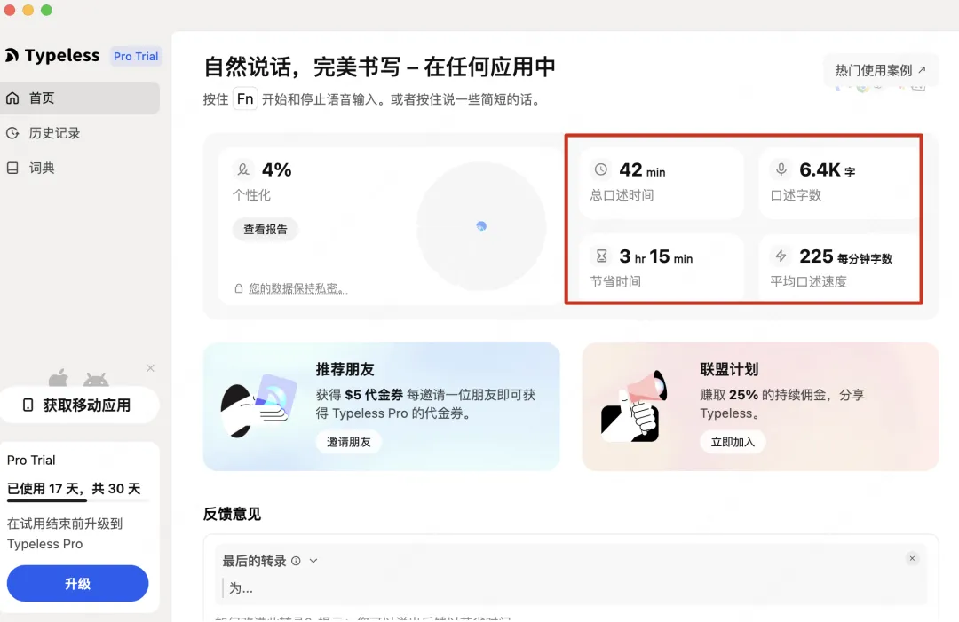 Typelss 是我使用的语音输入法,需要和AIcoding搭配使用,语音输入的速度是打字输入速度的4倍,语音呈现的信息更是同等时间打字的6倍。