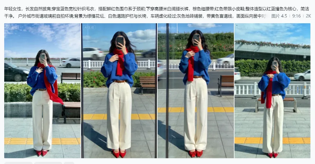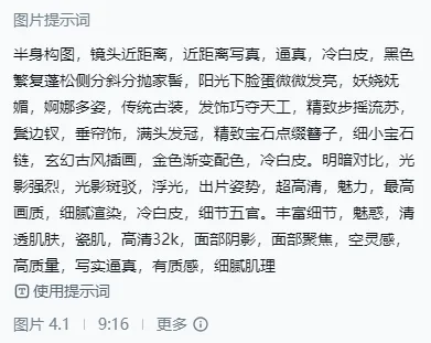 输提示词(越细越好)→ 调参数(比例 9:16、精细度 7-8)→ 生成→微调导出