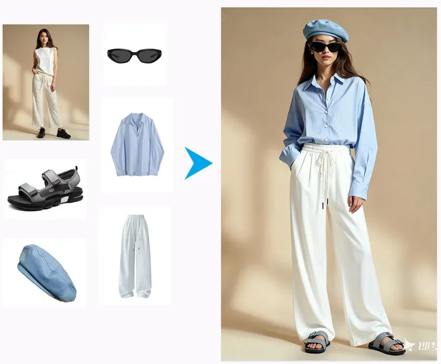 :上传单品图,生成穿搭平铺图、家居场景摆放图 -