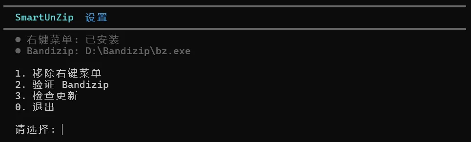 目前 SmartUnZip 针对 Bandizip 进行了优化,搭配使用效果最佳。