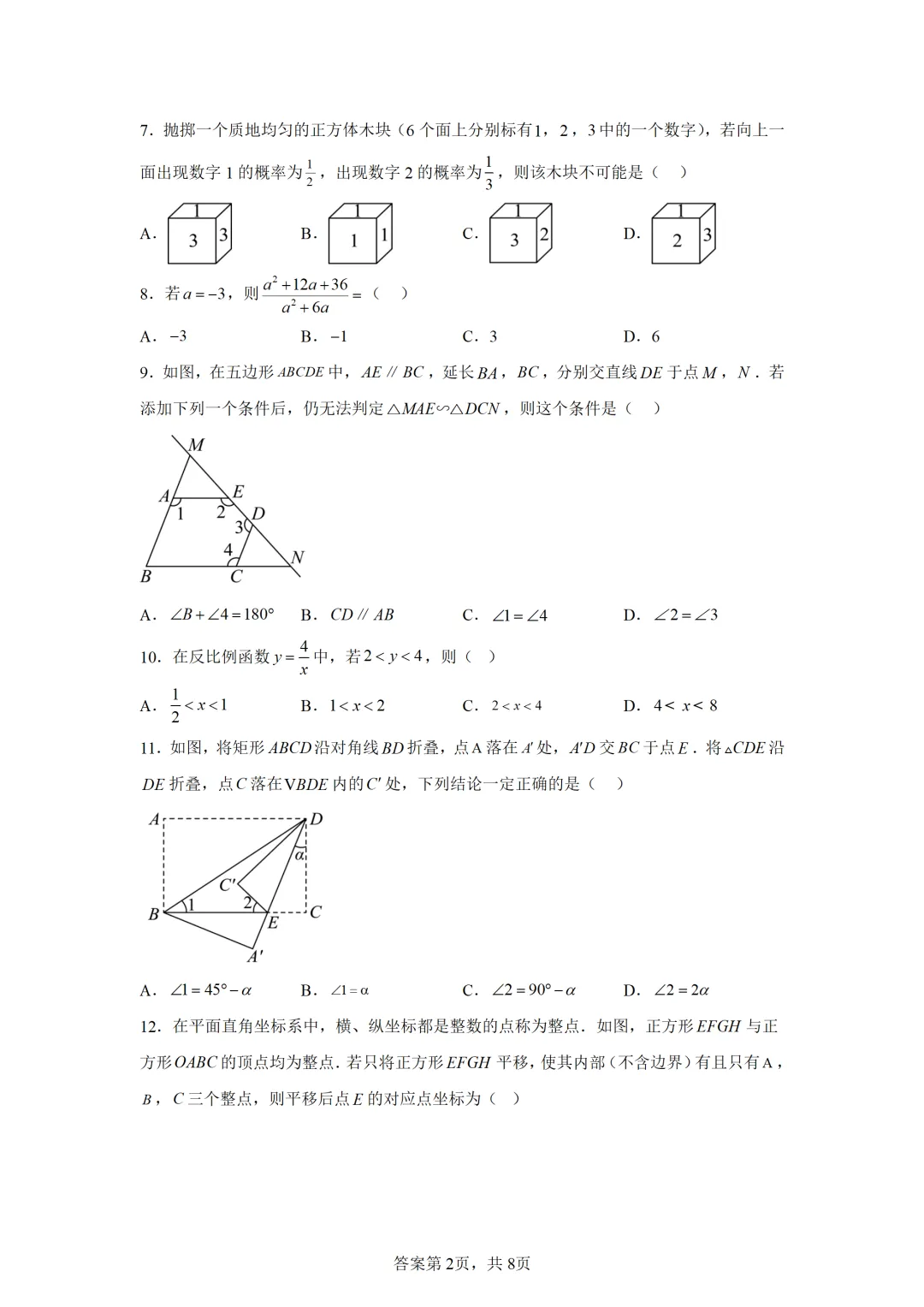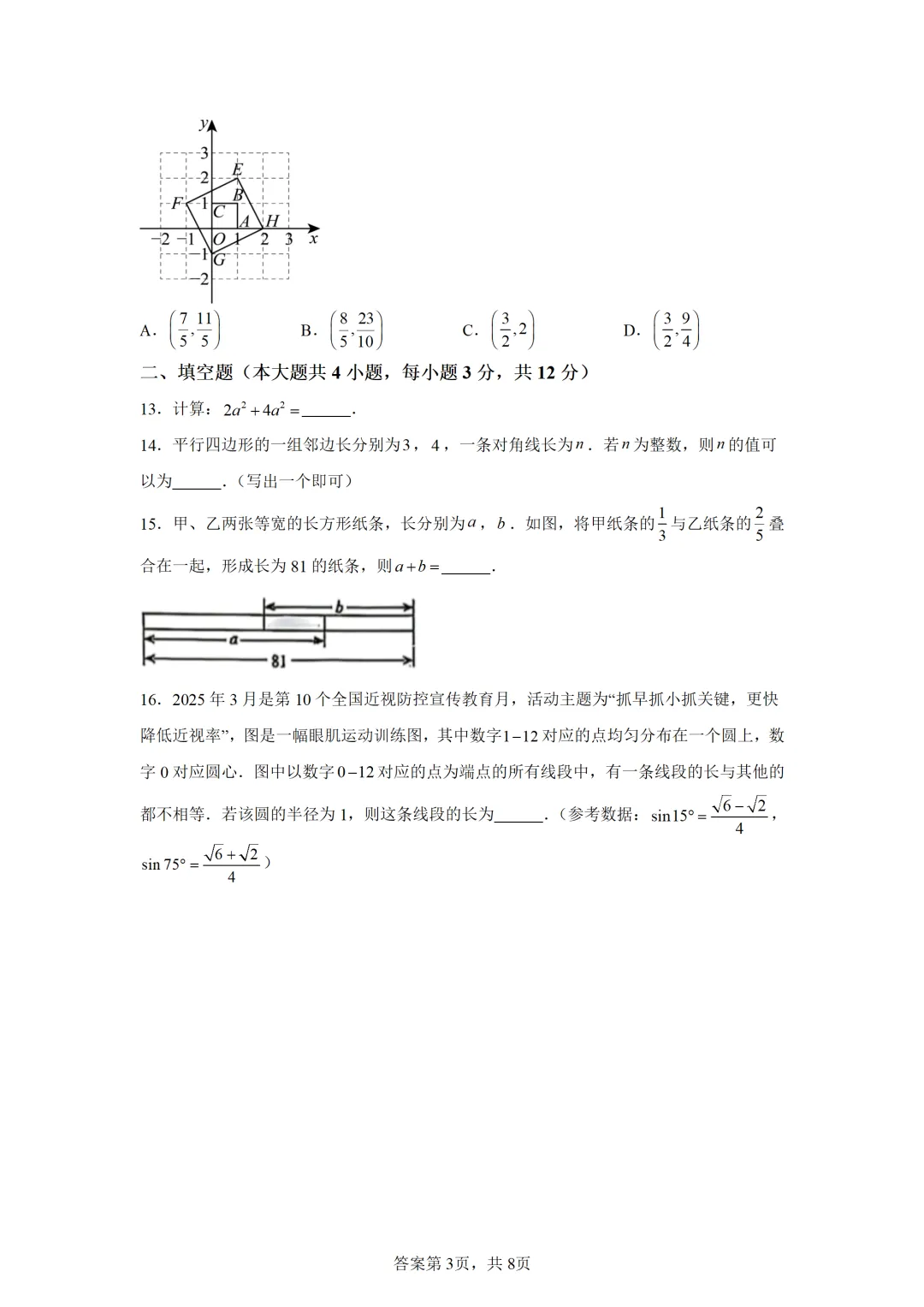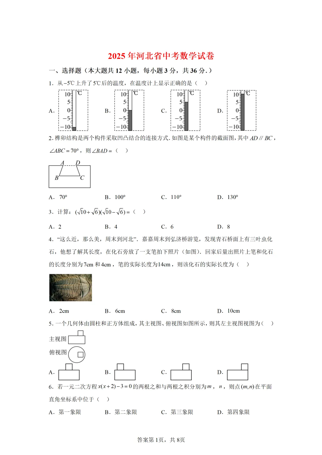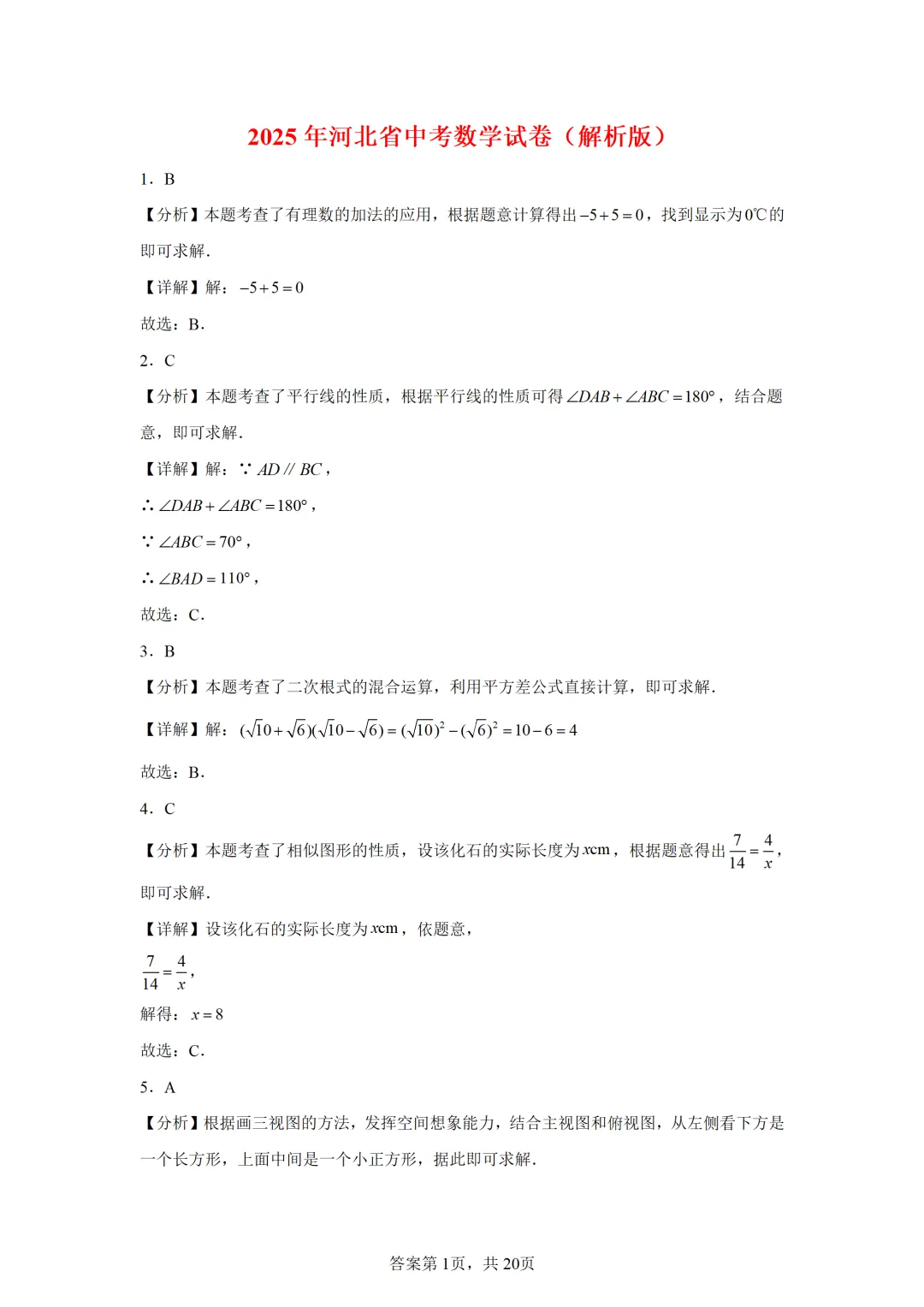 可下载:2025年中考数学【河北省卷】(含解析) 原卷版(答案在后面) 关注公众号,回复:电子版 自动领 解析版 关注公众号,回复:电子版 自动领 关注公众号,回复:电子版 自动领 (试卷著作权归属于相关教育部门) 关注公众号,回复:电子版 自动领