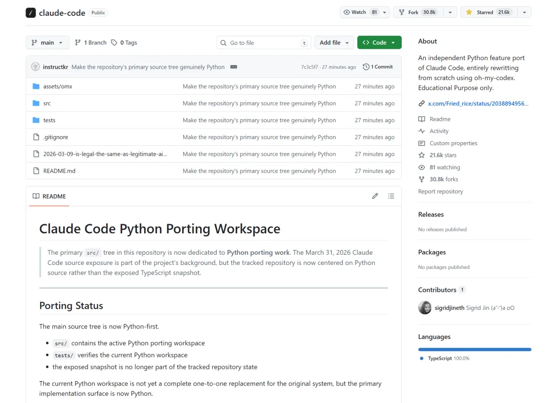 github源码仓库:https://github.com/instructkr/claude-code