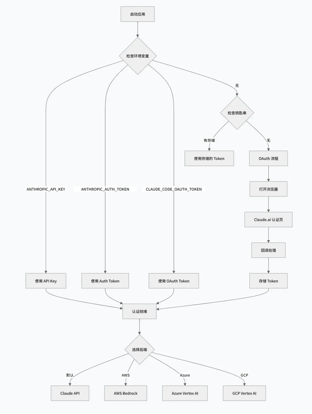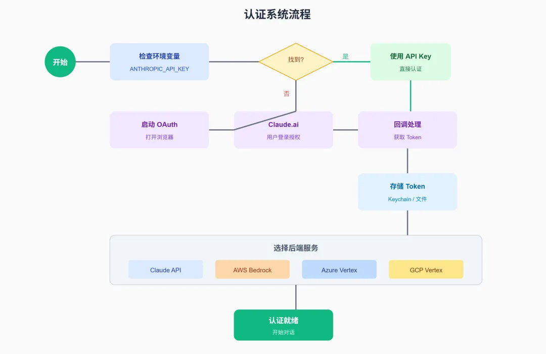 1 2 3 4 5 6 7 8 9 10 11 12 13 14 15 16 17 18 19 20 21 22 23 24 25 26 27 28 29 30 31 32 33 34 35 36 37 type AuthTokenSource = | 'ANTHROPIC_API_KEY' // 1. 直接 API Key | 'ANTHROPIC_AUTH_TOKEN' // 2. Auth Token | 'CLAUDE_CODE_OAUTH_TOKEN' // 3. OAuth Token | 'CLAUDE_CODE_OAUTH_TOKEN_FILE_DESCRIPTOR' // 4. 文件描述符 | 'CCR_OAUTH_TOKEN_FILE' // 5. CCR Token 文件 | 'apiKeyHelper' // 6. 自定义密钥助手 | 'keychain' // 7. 系统钥匙串 | 'none' // 8. 无认证// 认证检查顺序async function getAuthToken(): Promise<AuthToken> { // 1. 检查环境变量 if (process.env.ANTHROPIC_API_KEY) { return { source: 'ANTHROPIC_API_KEY', token: process.env.ANTHROPIC_API_KEY } } // 2. 检查 OAuth Token if (process.env.CLAUDE_CODE_OAUTH_TOKEN) { return { source: 'CLAUDE_CODE_OAUTH_TOKEN', token: process.env.CLAUDE_CODE_OAUTH_TOKEN } } // 3. 调用 apiKeyHelper const helperToken = await callApiKeyHelper() if (helperToken) { return { source: 'apiKeyHelper', token: helperToken } } // 4. 从钥匙串读取 const storedToken = await getFromKeychain() if (storedToken) { return { source: 'keychain', token: storedToken } } // 5. 发起 OAuth 流程 return await performOAuthFlow()}