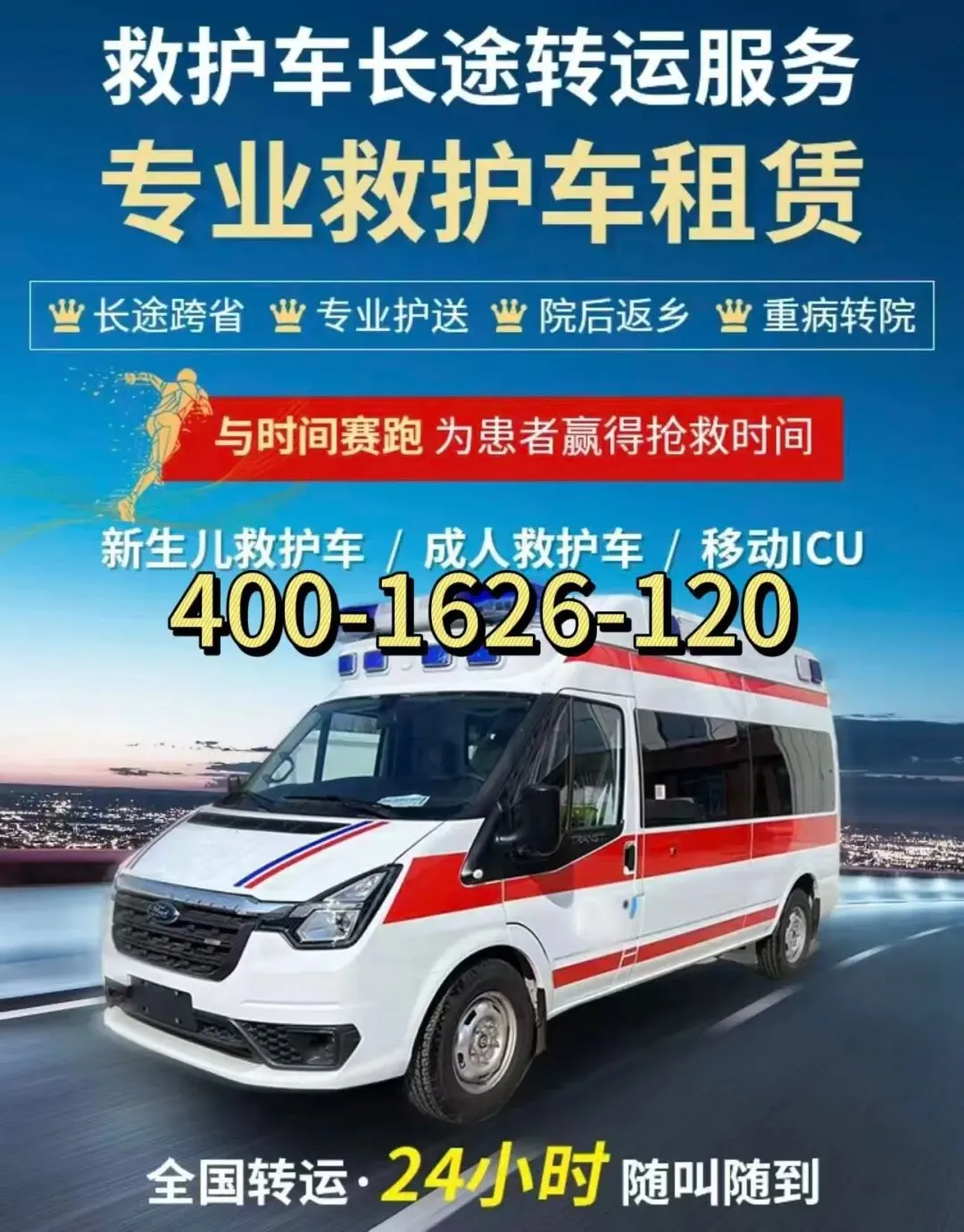 救护车出租转运电话:4001626120