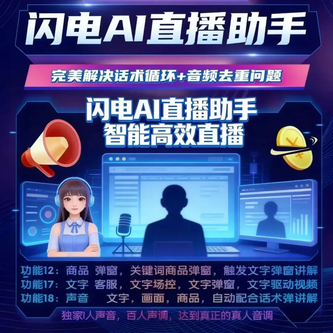 #闪电 AI 主播 #AI 智能回复 #AI 无人直播方案 #直播去重工具 #直播效率神器 #AI 直播技术